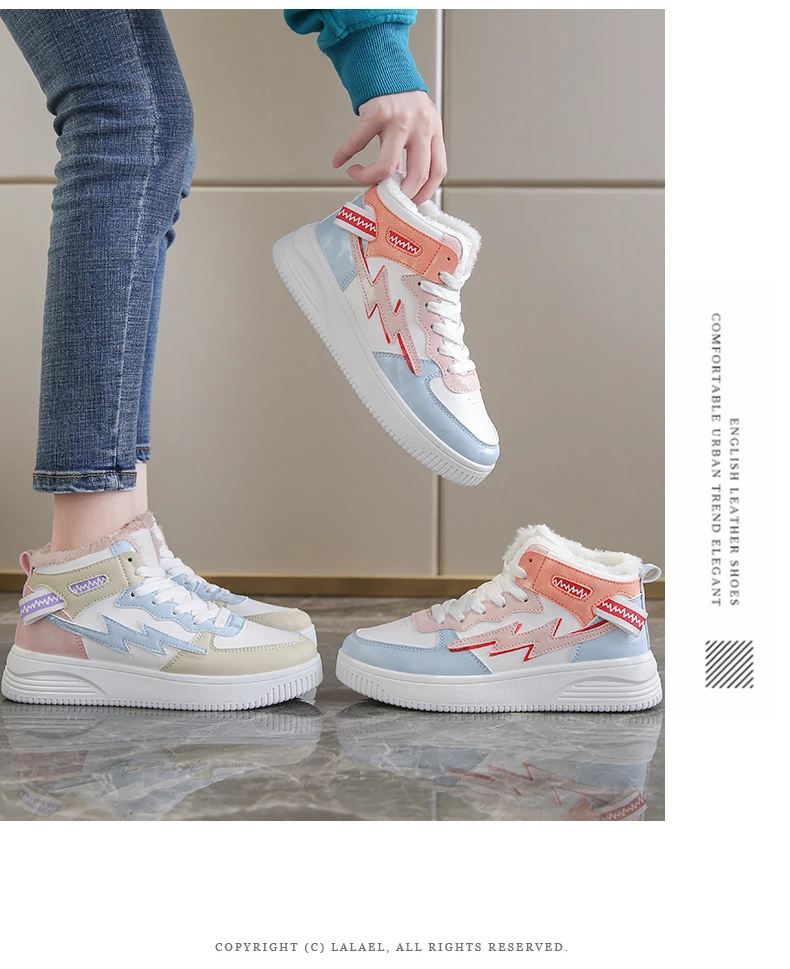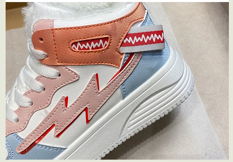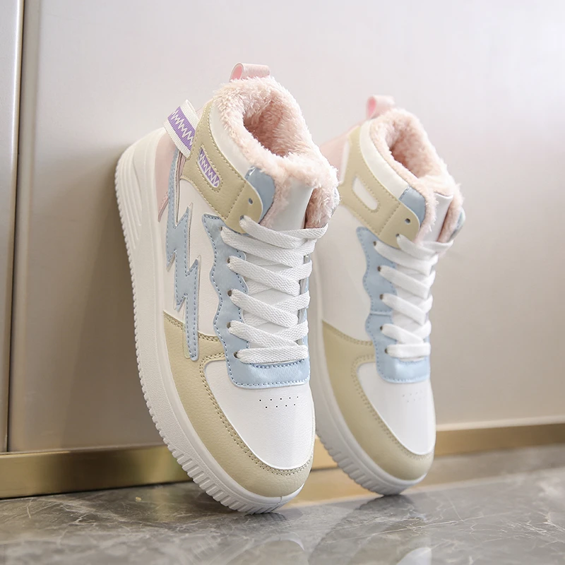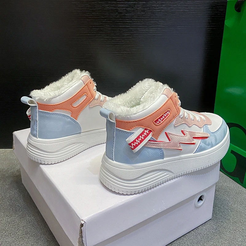 Зимние ботинки; Женские ботильоны; Теплая зимняя спортивная обувь из искусственной кожи с плюшем; Женские кроссовки с высоким берцем; Обувь для бега; Женские белые зимние ботинки