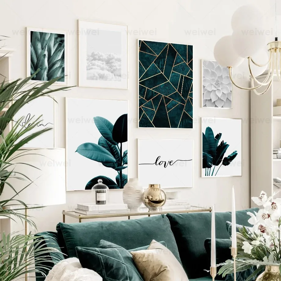 Зеленые свежие банановые листья облако суккуленты настенная Картина на холсте скандинавские плакаты и принты настенные картины для декора гостиной