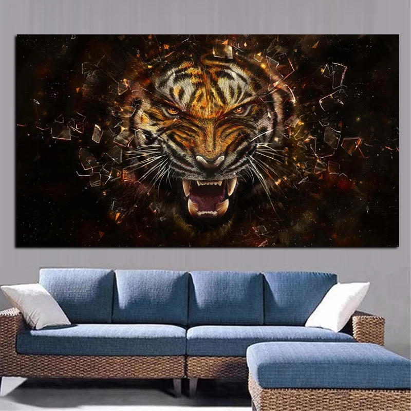 Абстрактные животные, Черная пантера, настенная Картина на холсте, ...