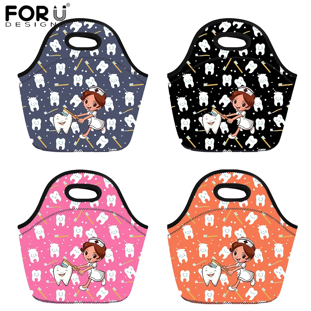 Неопреновая сумка для ланча FORUDESIGNS для девочек, термопечать для ухода за зубами, ланчбокс для свежих продуктов, Женский ланчбокс для путешествий и пикника, Ланчбокс