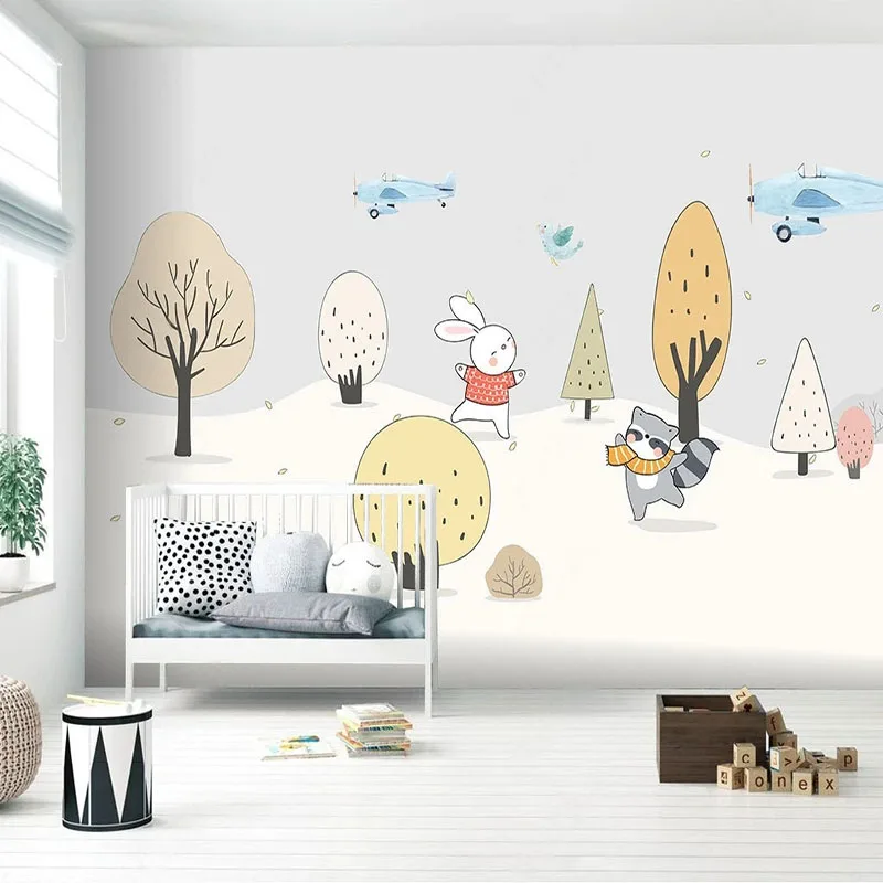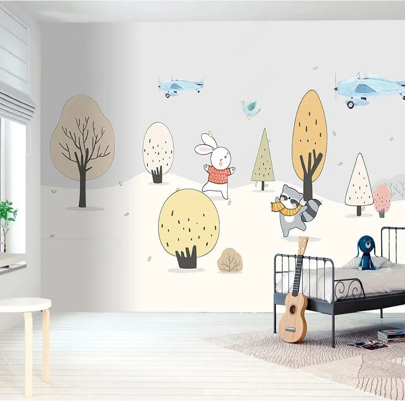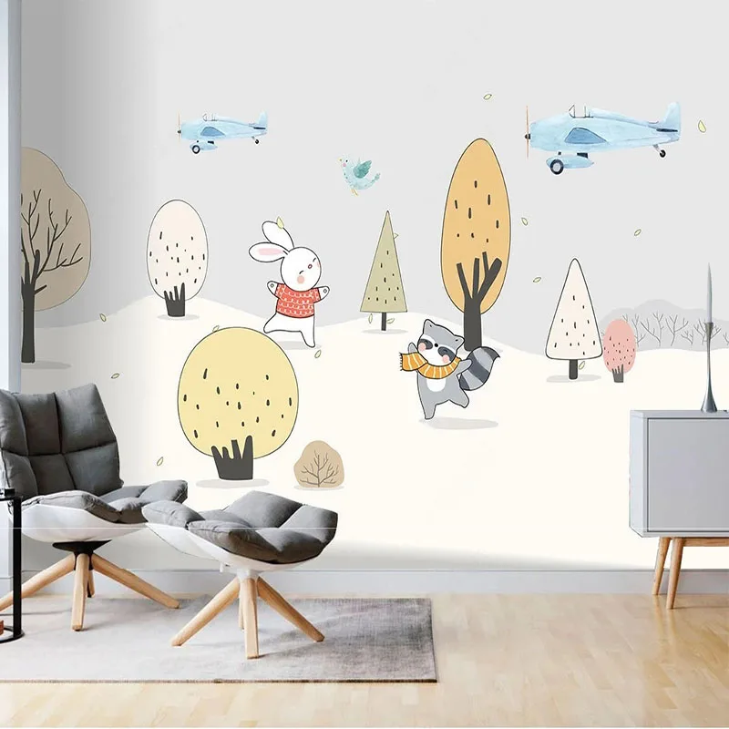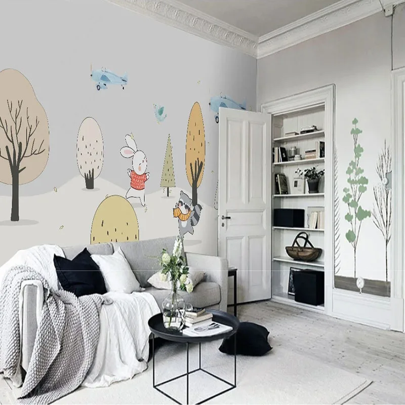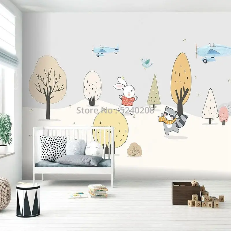 Фотообои 3D лесной кролик фон для детской комнаты бумажные Мультяшные фрески наклейки бумажные фрески