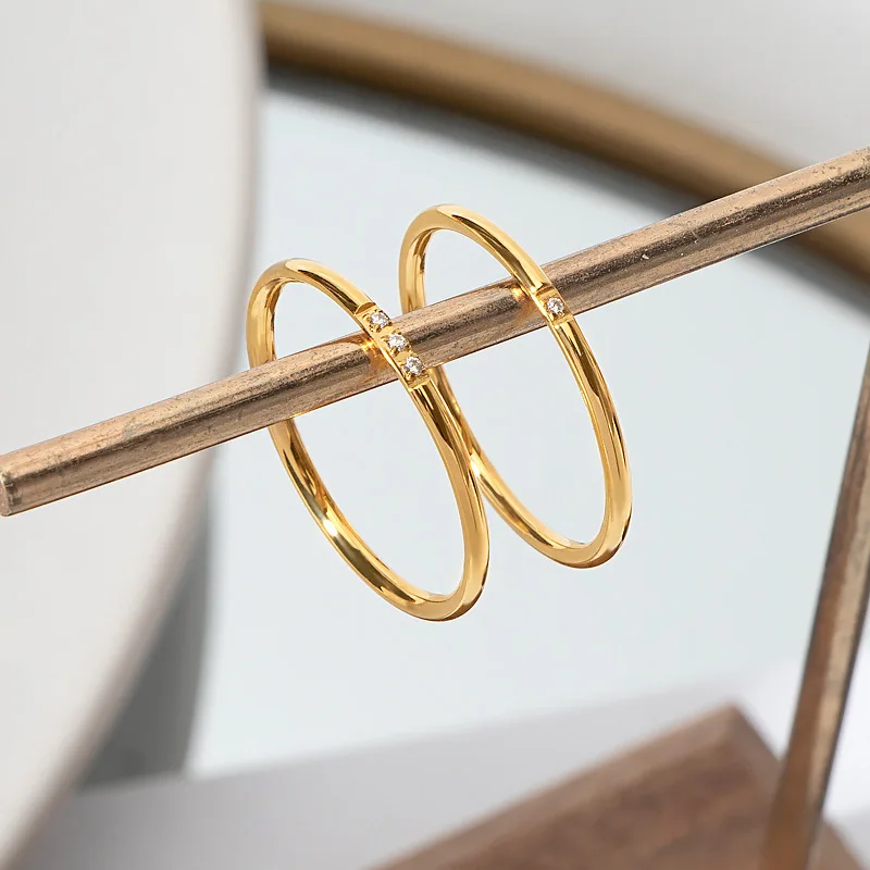 Женские Простые Кольца из нержавеющей стали с цирконом, 3 цвета, 1 мм, цельнокруглая Минималистичная тонкая изысканное кольцо, модные ювелирные украшения, 2021