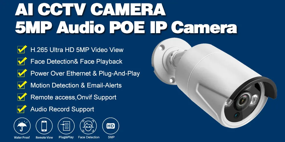 IP-Камера уличная водонепроницаемая, 5 МП, POE, Wi-Fi