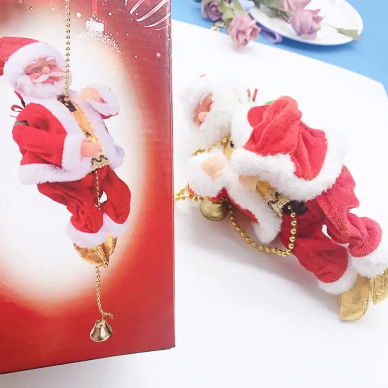 Креативные детские подарочные украшения, прекрасные электрические игрушки Санта-Клаус, подъем по лестнице, цепочка из бусин, Рождественская кукла для пожилых с музыкой, подъем