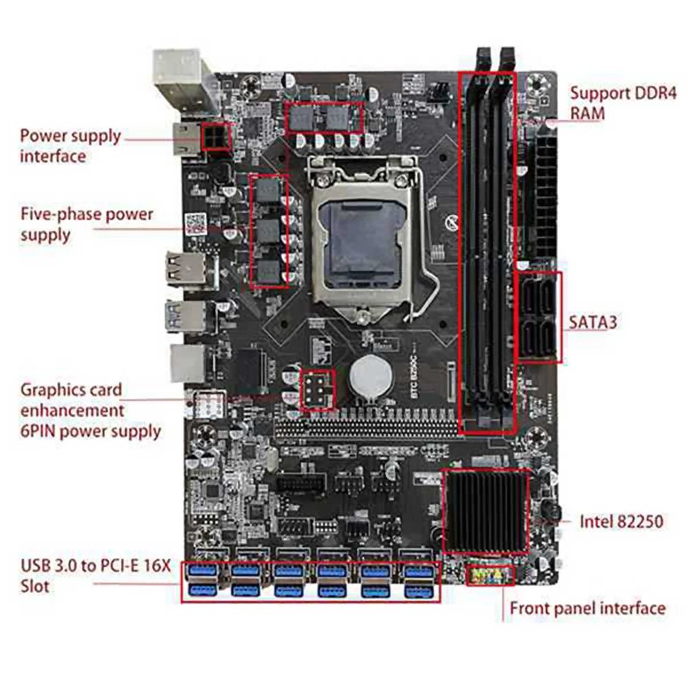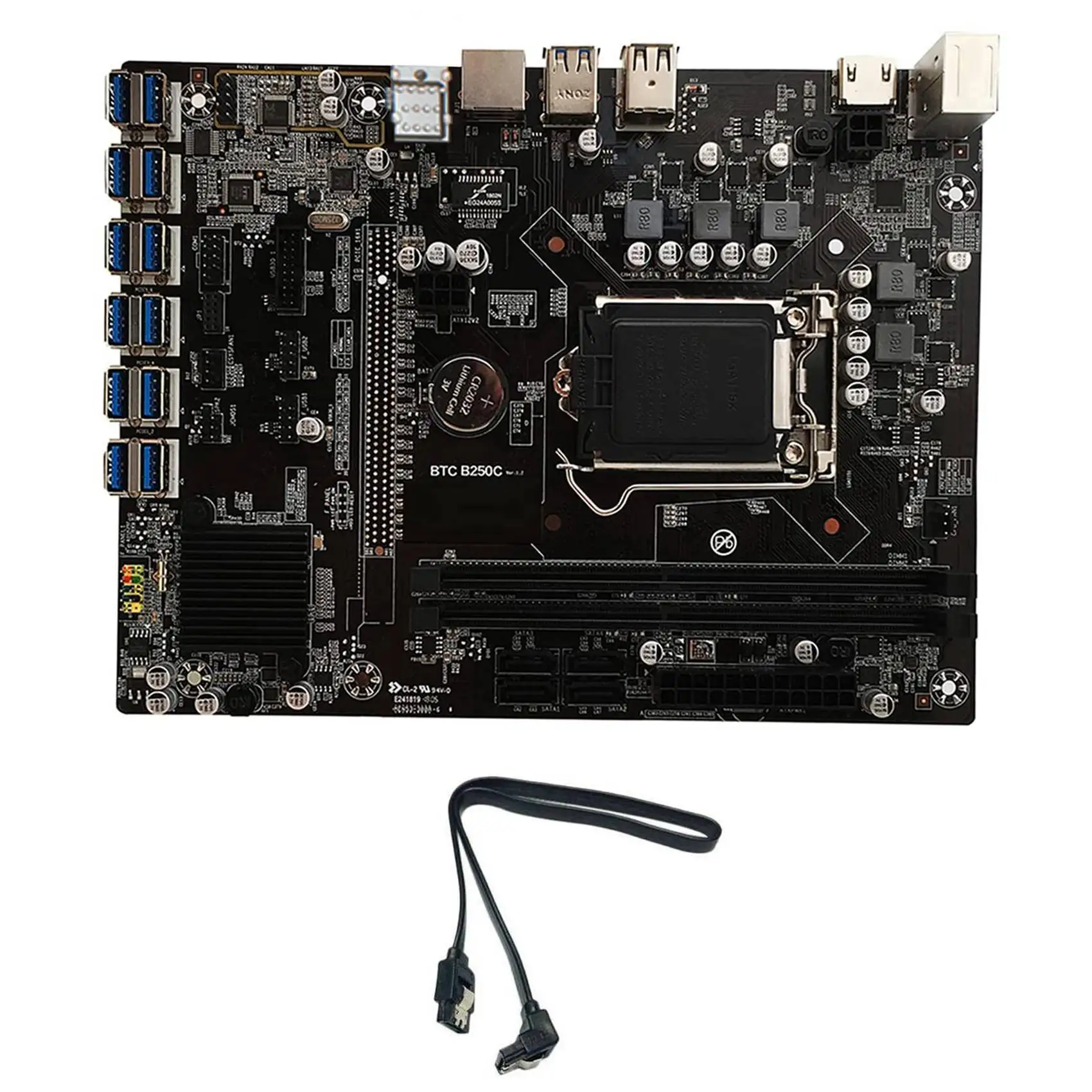 Материнская плата B250C для майнинга BTC с кабелем SATA 12xpcie к USB3.0, слот для графической карты LGA1151 поддерживает DDR4 DIMM RAM для BTC