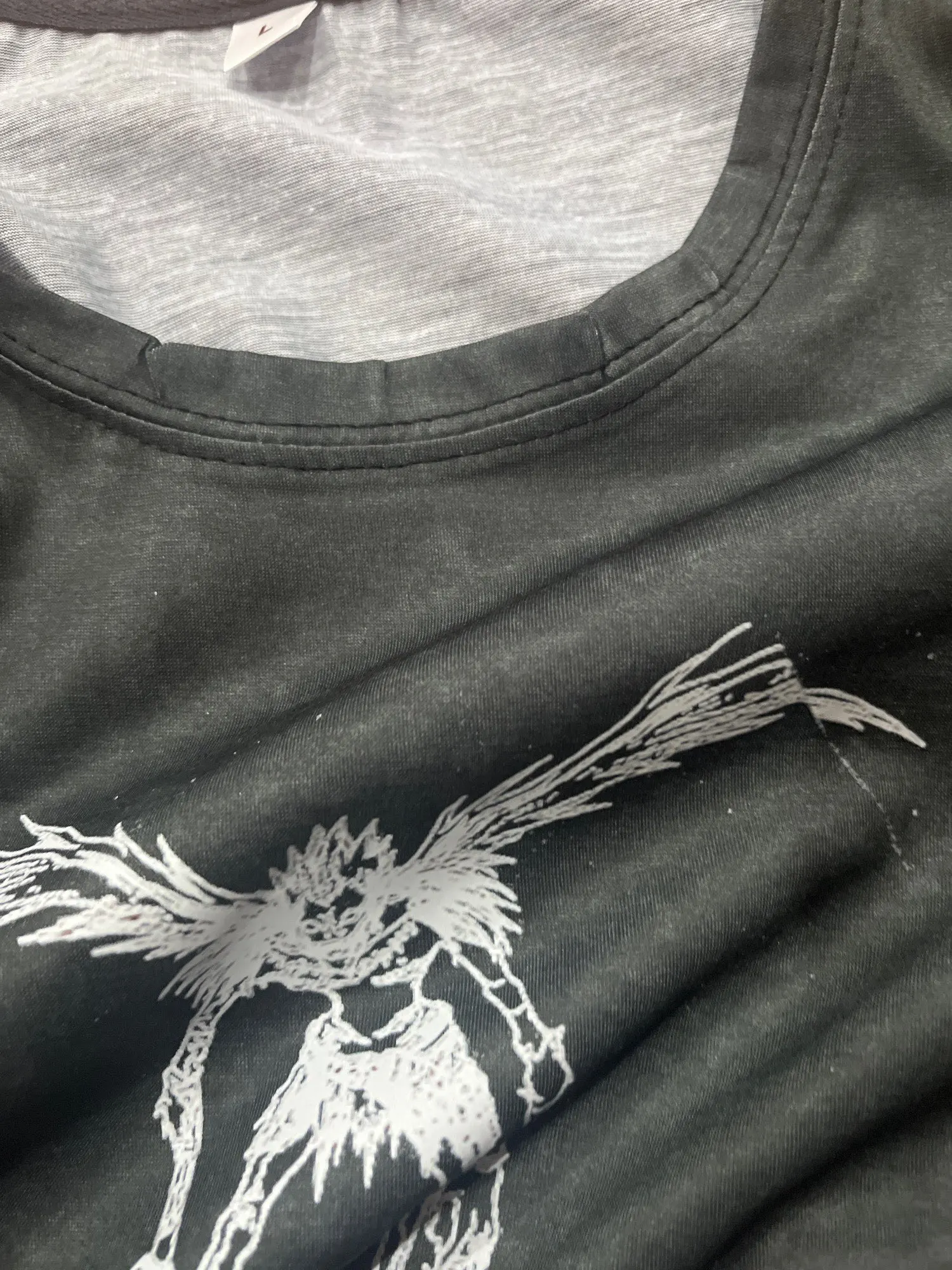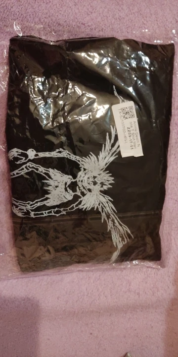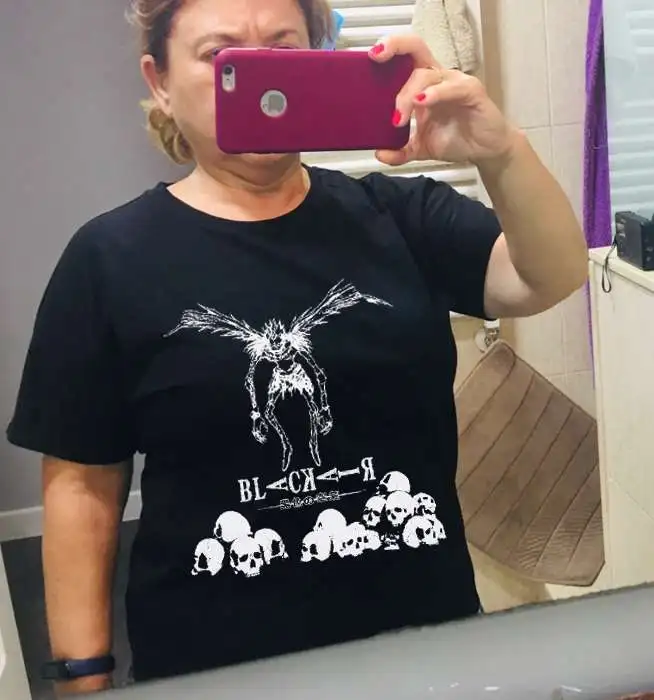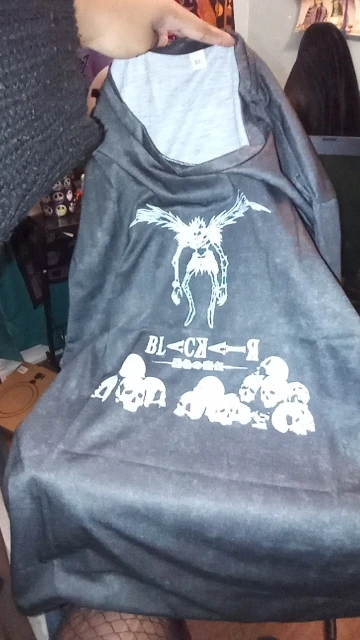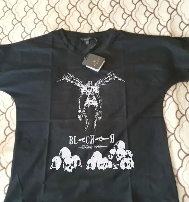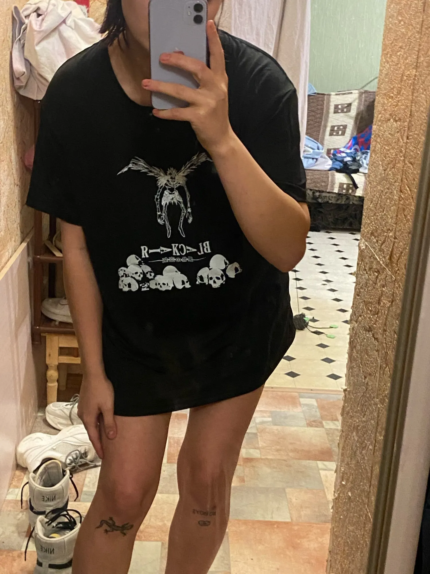 В целом нормально, я ношу S, здесь обычно заказываю М, но что-то решила взять L и не зря. В общем, если хотите, чтоб сидело, как на фотографии у продавца, то берите самый большой размер) Я заказала не чёрный вариант, а который такой потерто-серый, ну как бы в жизни он вообще не такой, я разочаровалась, но потом смирилась, а принципе норм. Камера не передаёт цвет, но он вообще не такой, какой должен быть, лучше бы взяла чёрный. Ткань немного поосвечивает, к телу достаточно приятная))) А кстати, швов на рукаве, как на фотографии у продавца нет, имею ввиду которые должен быть чуть ниже плеча :) Качество рисунка отвратительное, но да ладно, понятно, что Рюк и на этом спасибо :)))