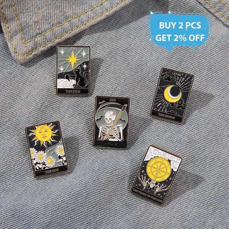 Эмалированные значки Tarot, солнце, луна, звезды, готический скелет