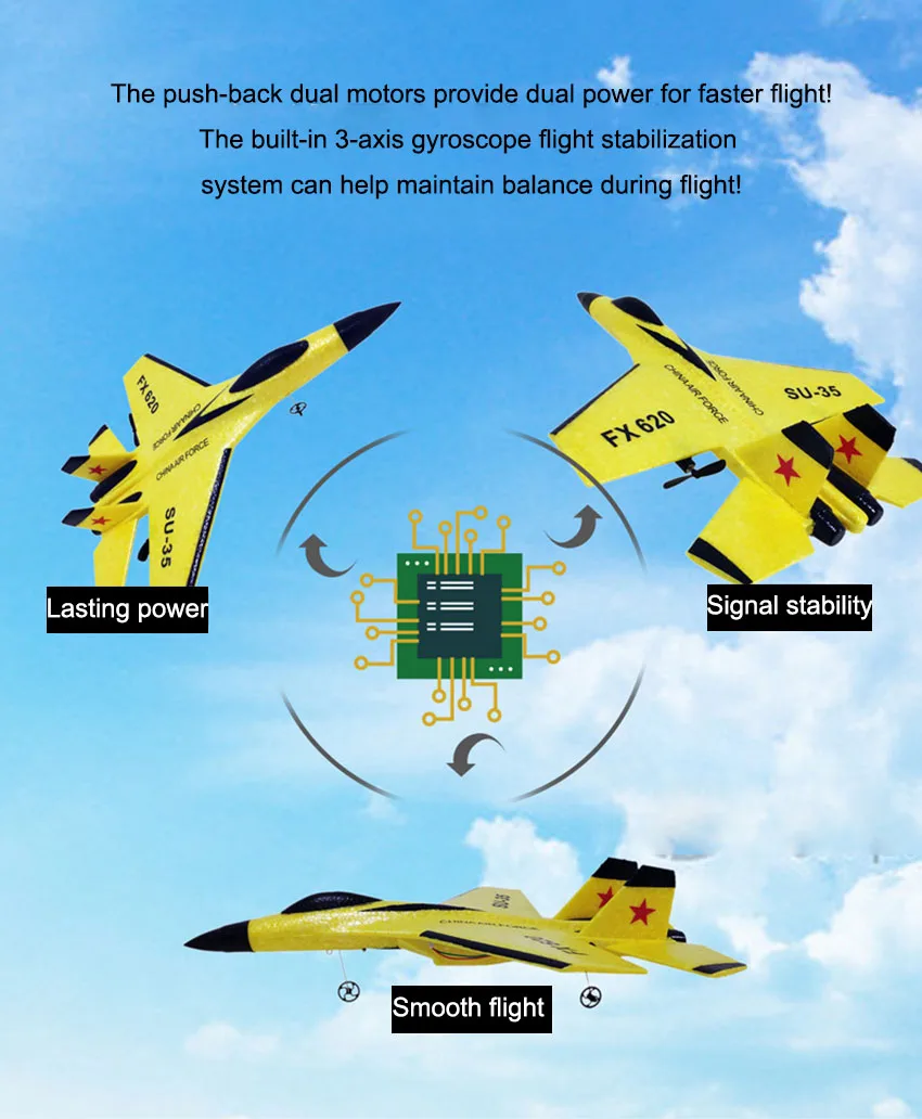 Встроенная Гироскопическая автоматическая система стабилизации, когда самолет собирается потерять контроль, самолет начнет автоматический баланс, когда дроссельная заслонка будет выпущена!
