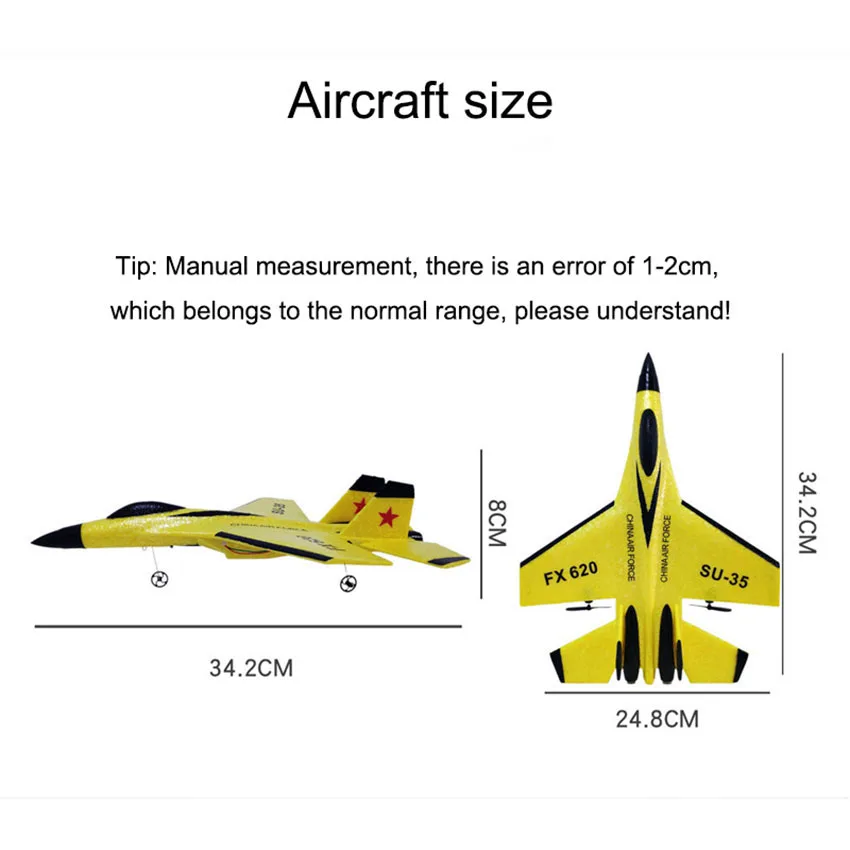 Размер радиоуправляемого самолета: 34,2*24,8*8 см