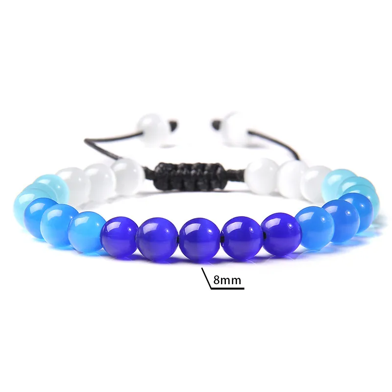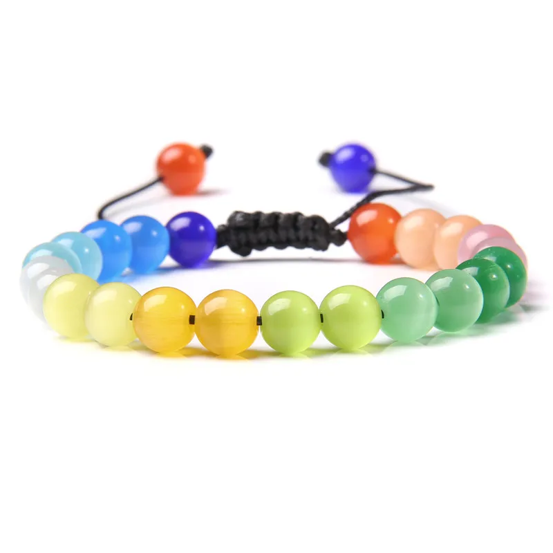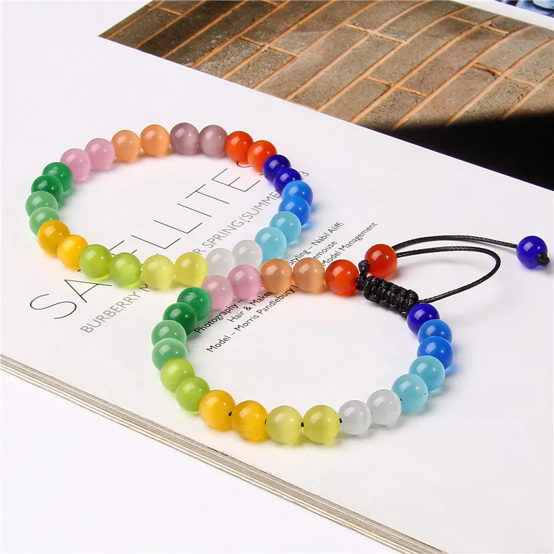 Красочные браслеты с камнями кошачий глаз для женщин и мужчин, стеклянные гладкие опаловые бусины, плетеный браслет, чакра, регулируемый браслет