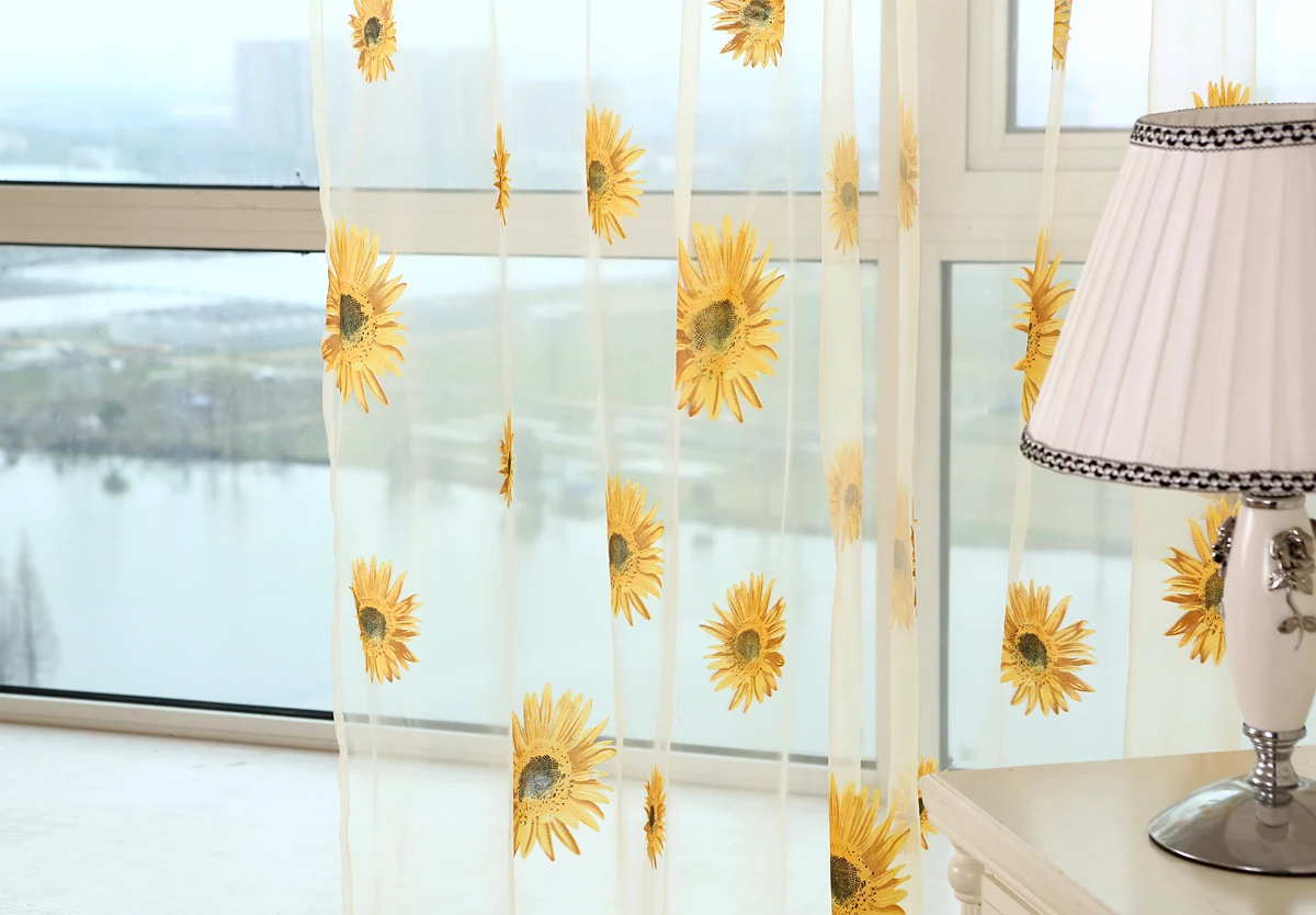 Тюлевая занавеска с рисунком подсолнуха, домашний декор, вуаль для ...