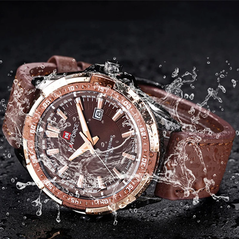 Часы наручные NAVIFORCE мужские кварцевые, модные спортивные водонепроницаемые Роскошные деловые повседневные, с кожаным ремешком