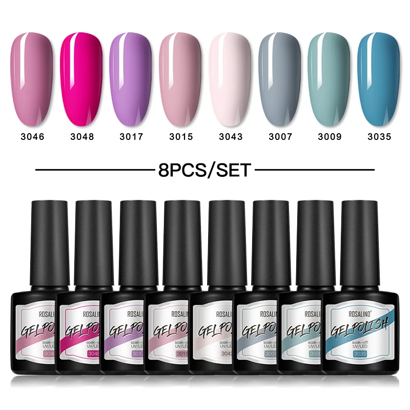 Розалинд 8 мл Гель-лак набор 2/4/6/8 шт. УФ набор гелей для ногтей для маникюра Полупостоянный Гибридный гель Лаки базовое и топовое покрытие для ногтей искусство