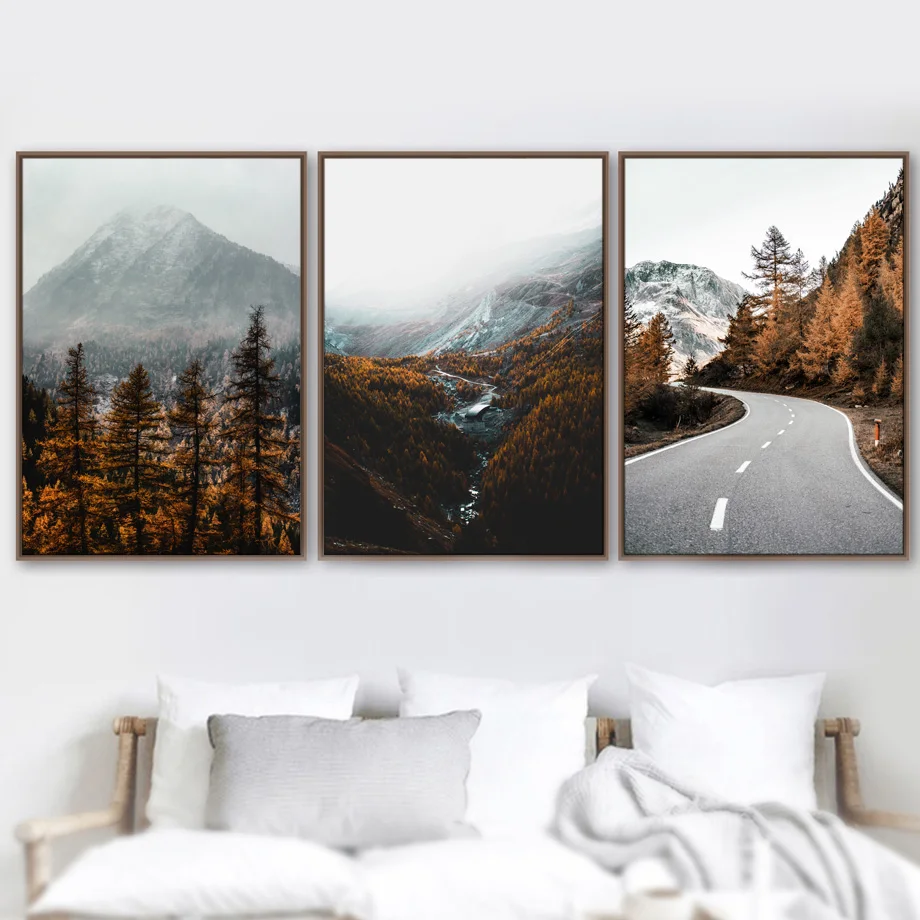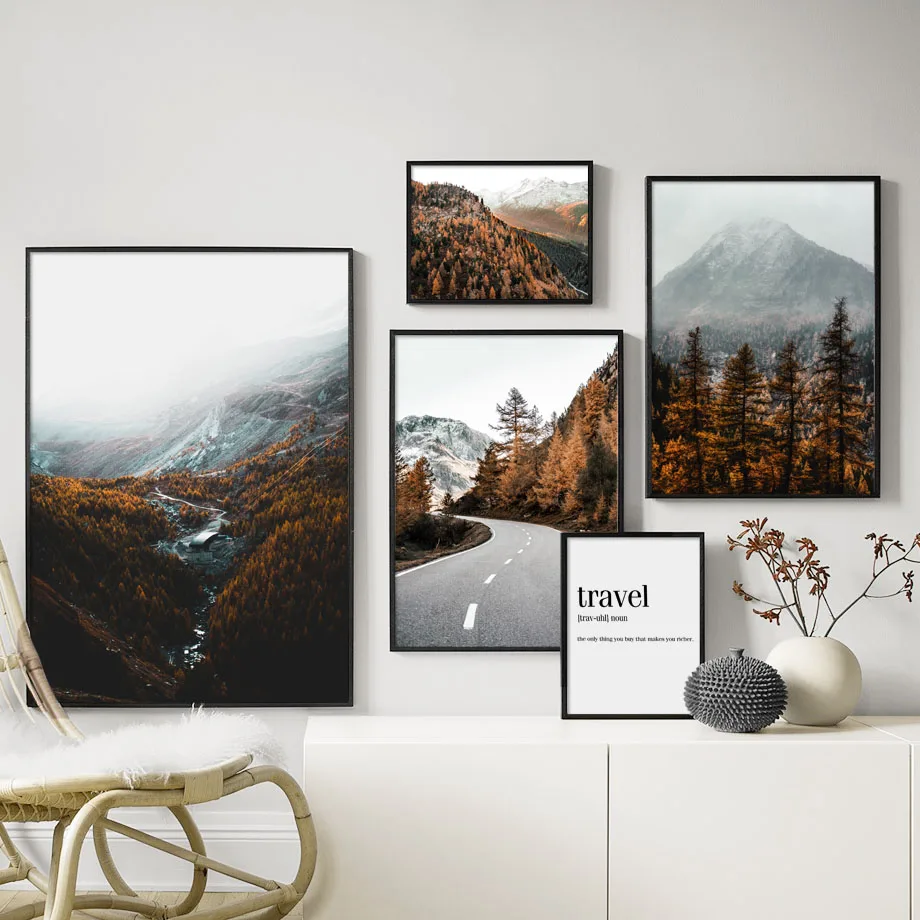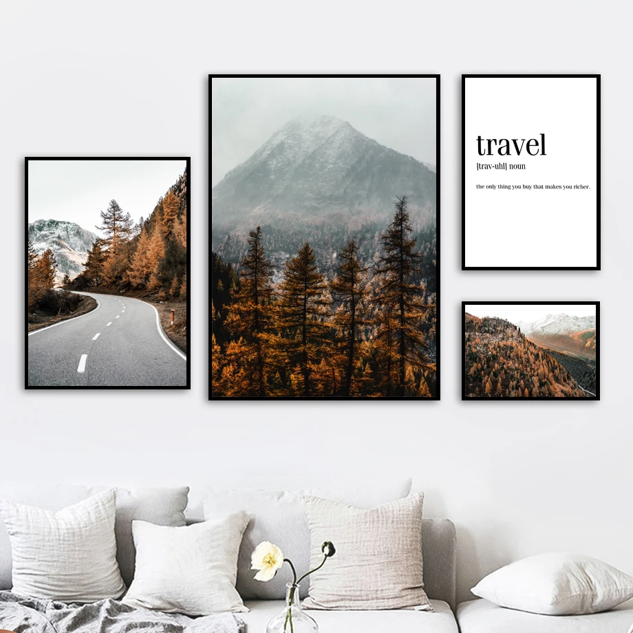 Настенная Картина на холсте с изображением гор, леса, дороги, пейзажа, путешествия, плакаты и принты, природный пейзаж, картины для интерьера дома