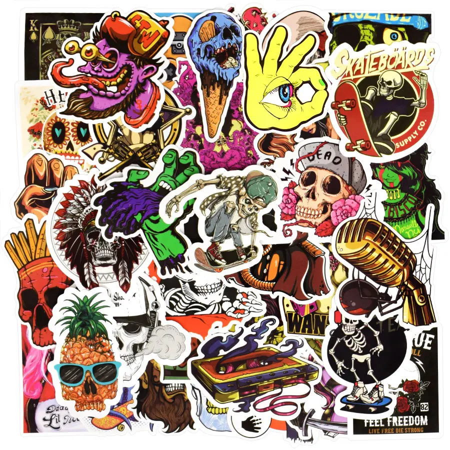 50 шт., темная страшная наклейка, классный скелет, граффити, рок, п...