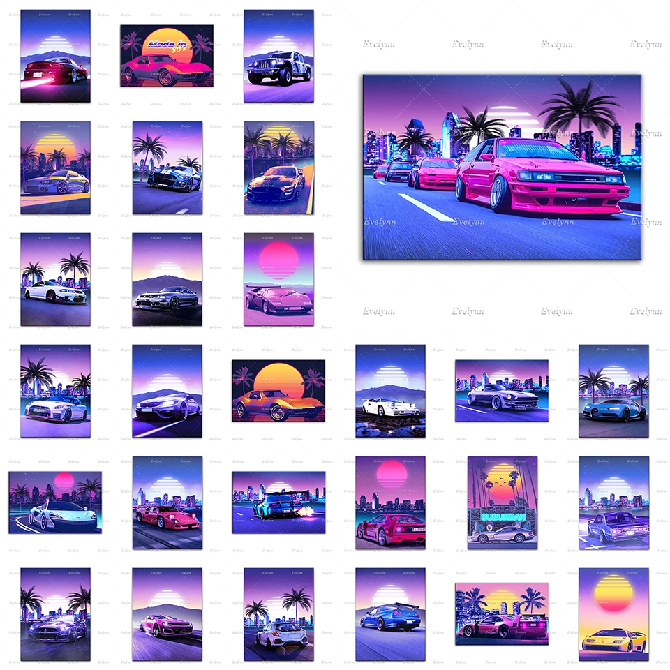 Автомобиль Synthwave Nissan художественный плакат закат Вождение спортивный автомобиль Картина гостиная Декор Canva скандинавский настенный художественный принт домашний декор