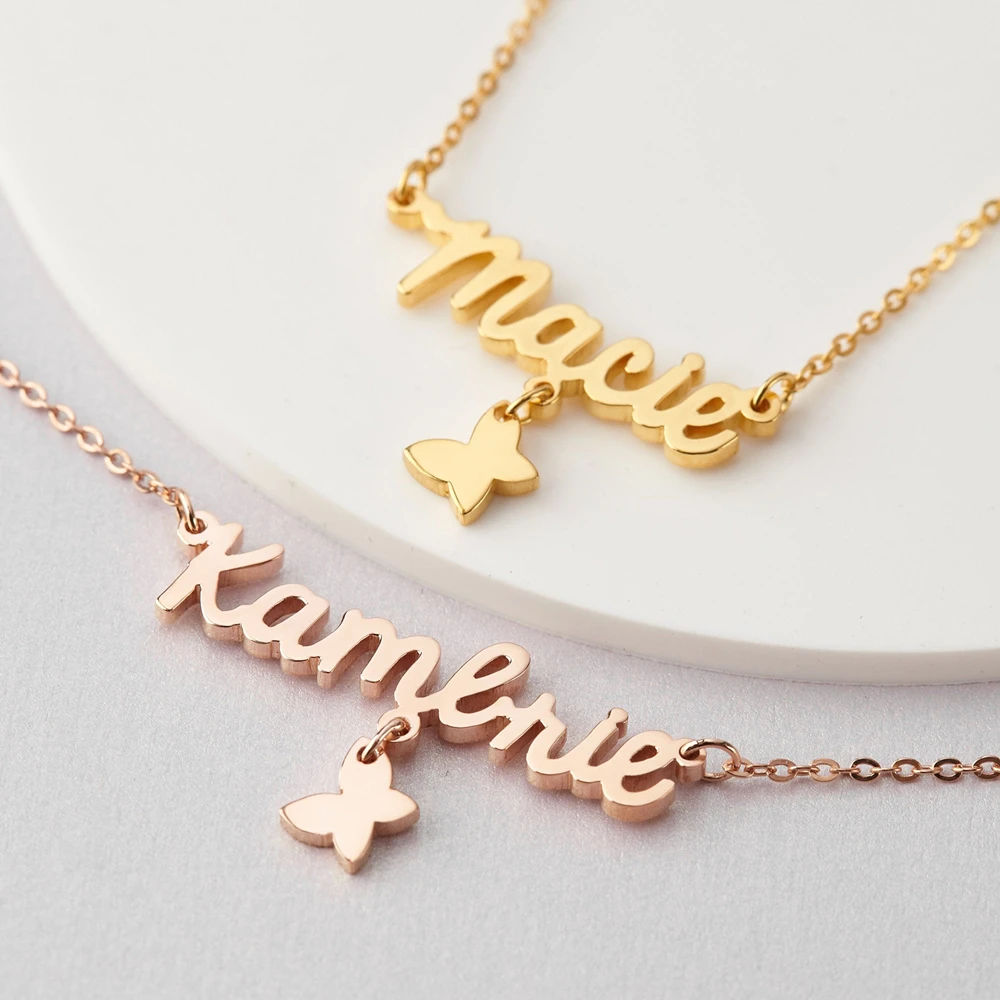 Ожерелье с именем для женщин и детей, ювелирное изделие из нержавеющей стали со звездой, бабочкой, луной, короной, сердцем, индивидуальное ожерелье