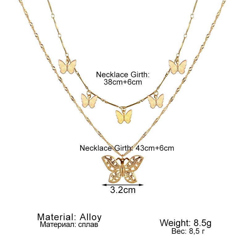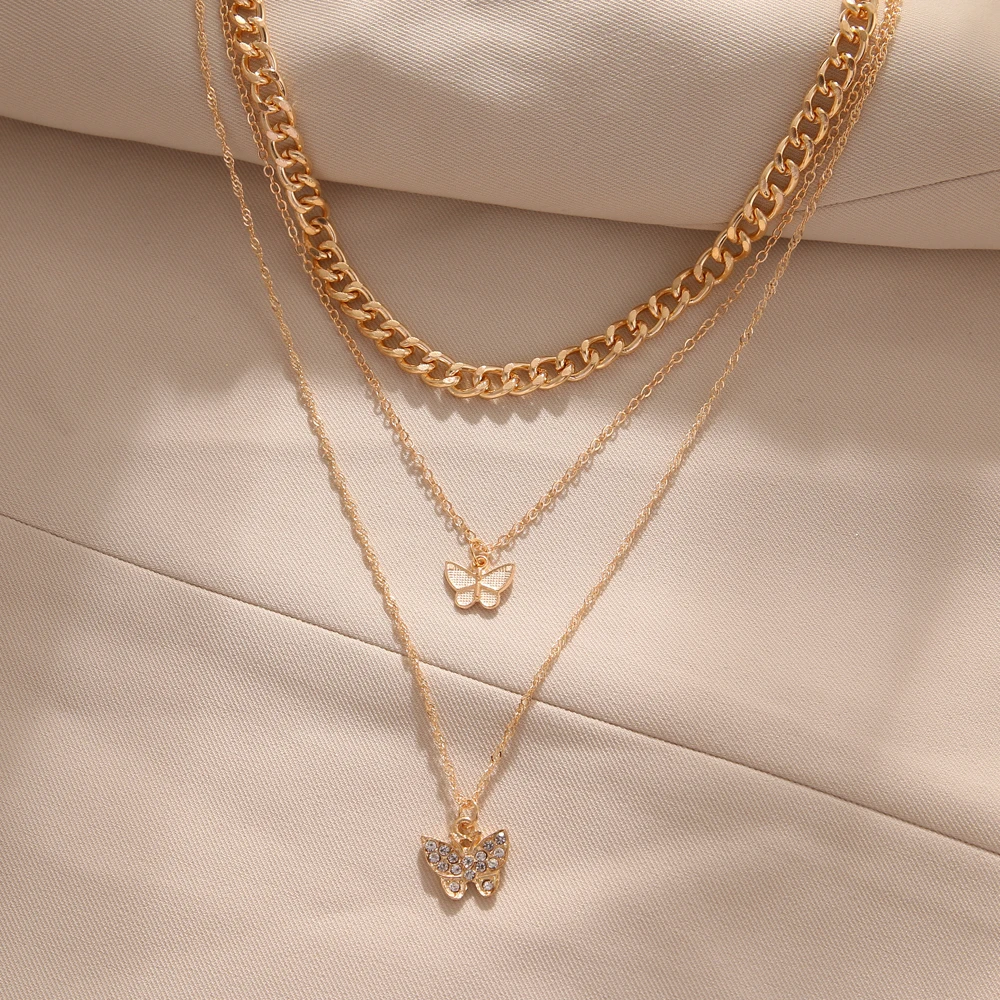 Цепочка многослойная с подвеской-бабочкой женская, ожерелье геометр...