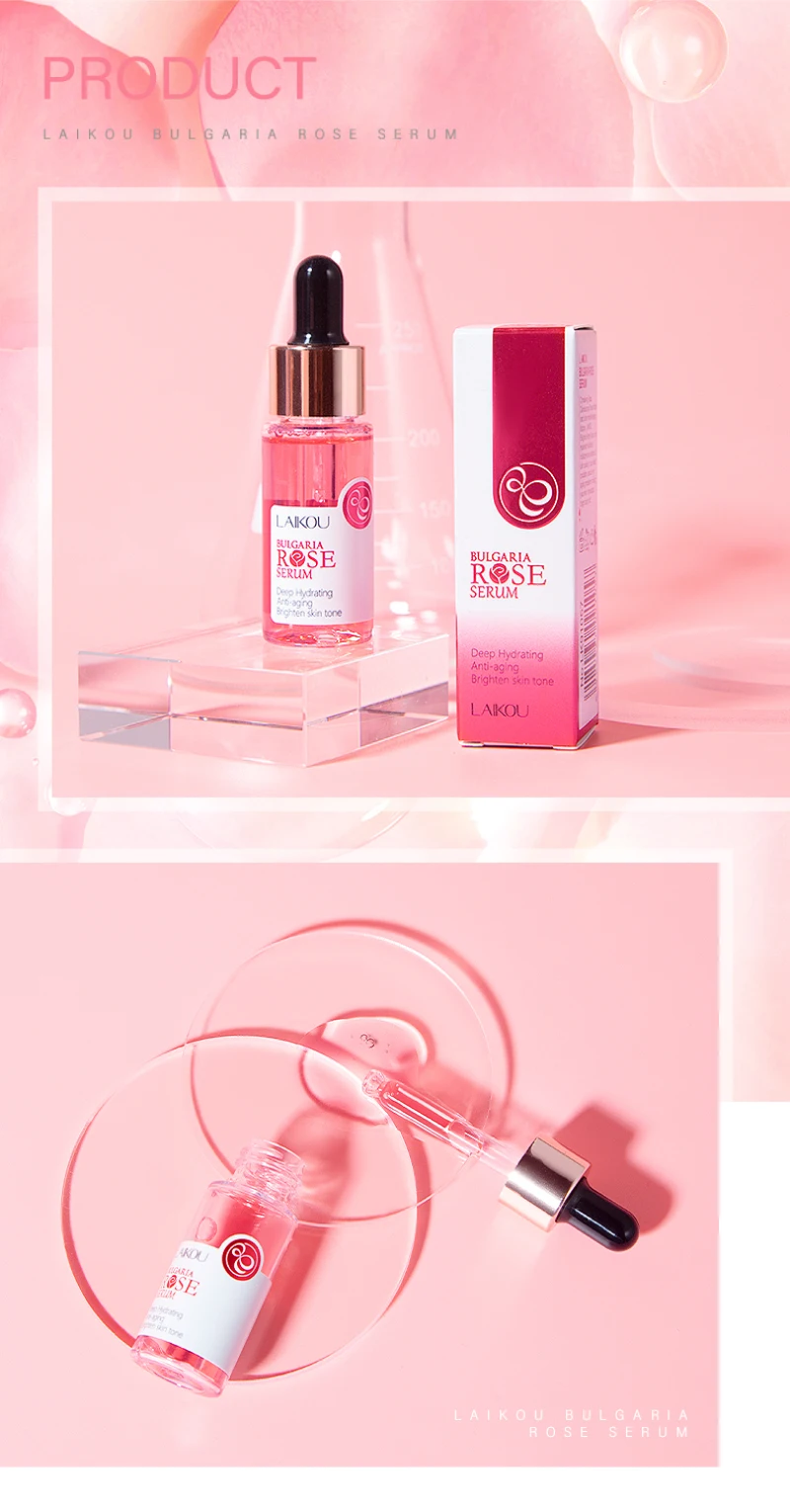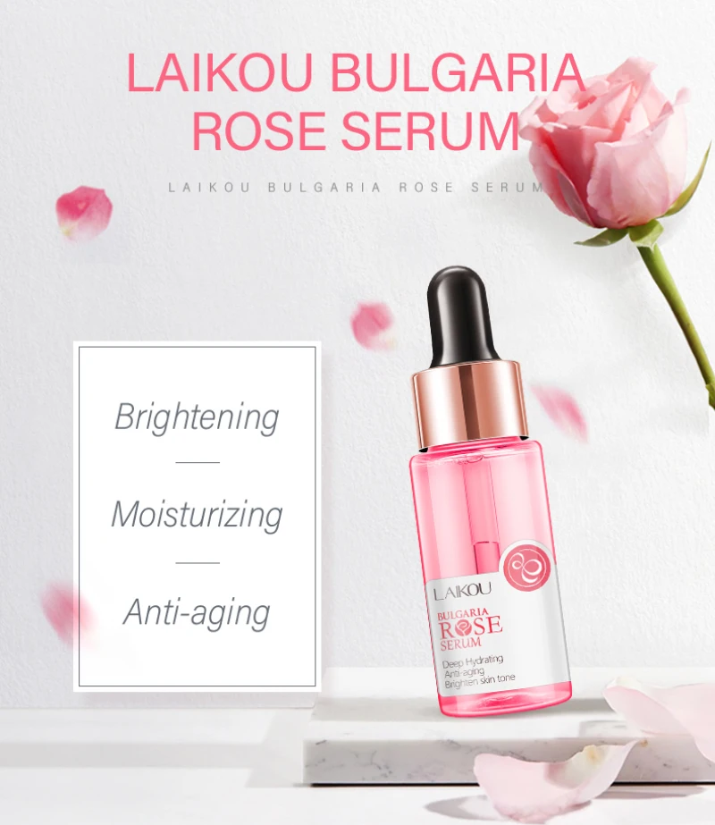 Содержащая цветок розы дамасена воды и других влажных факторов, LAIKOU Bulgaria Rose сыворотка может пополнять достаточное количество влаги и питательных веществ для кожи быстро. Он может противостоять окислению, уменьшает проблемы со старением кожи, делая вашу кожу увлажненной, яркой и мягкой.