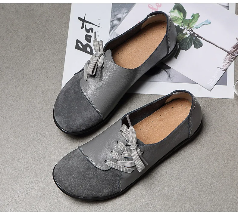 Мюли женские из натуральной кожи, замшевые удобные туфли на плоской подошве, на шнуровке, повседневная обувь для вождения, смешанные цвета