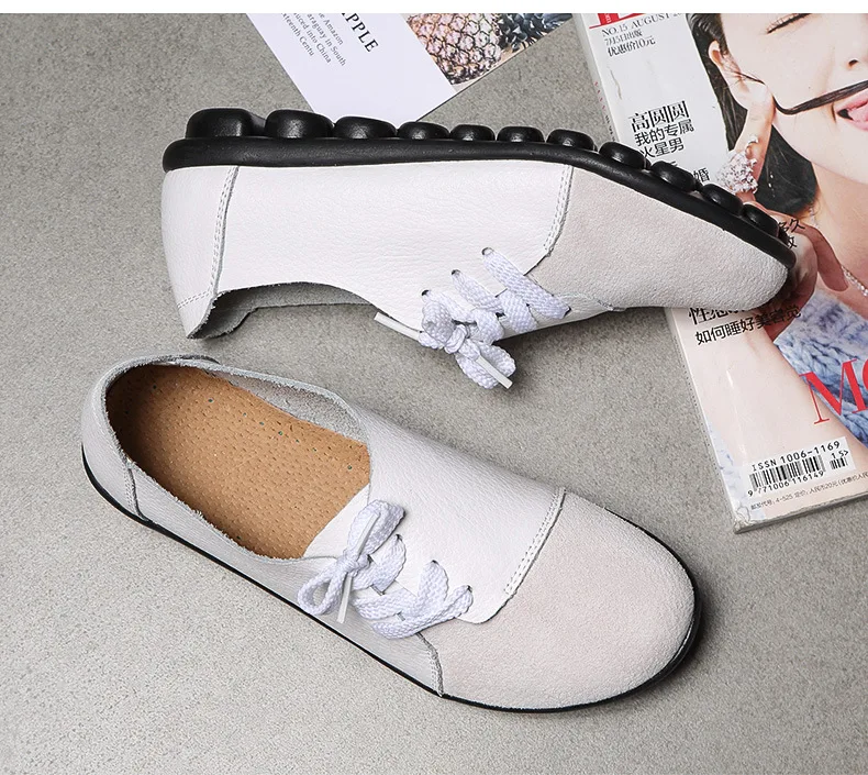 Женские мокасины из натуральной кожи, на плоской подошве, со шнуровкой