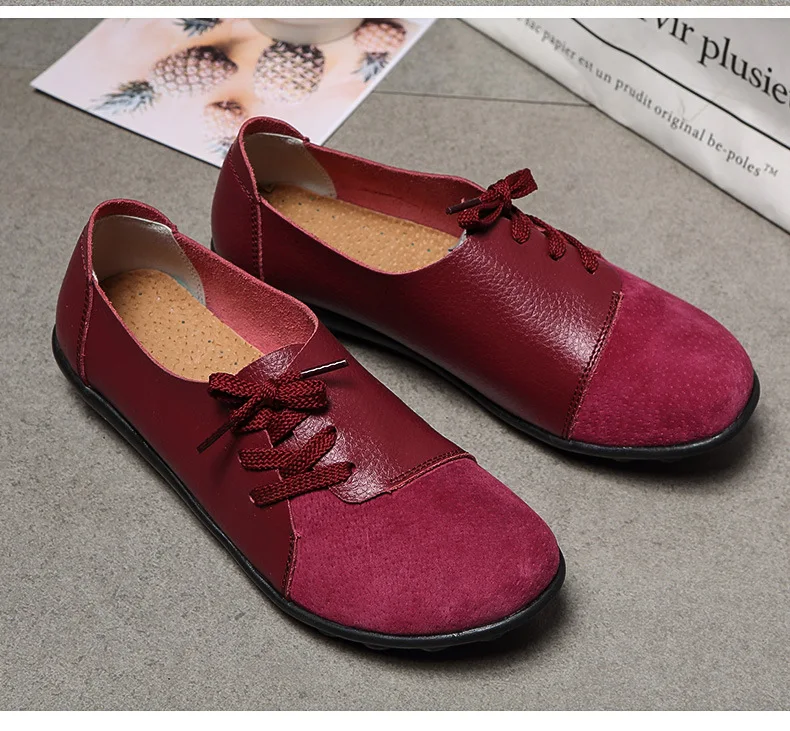 Женские мюли из натуральной кожи; Разноцветные замшевые комбинированные удобные туфли на плоской подошве; Женская повседневная обувь для вождения на шнуровке
