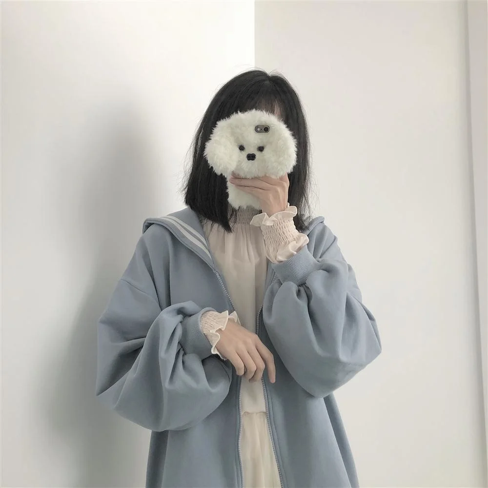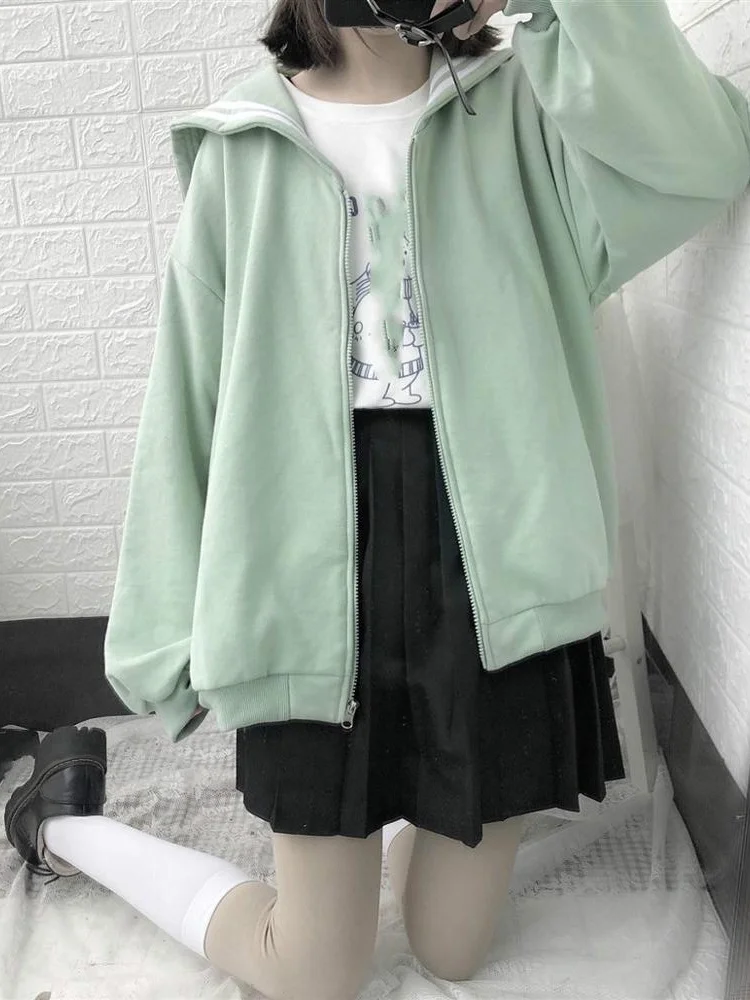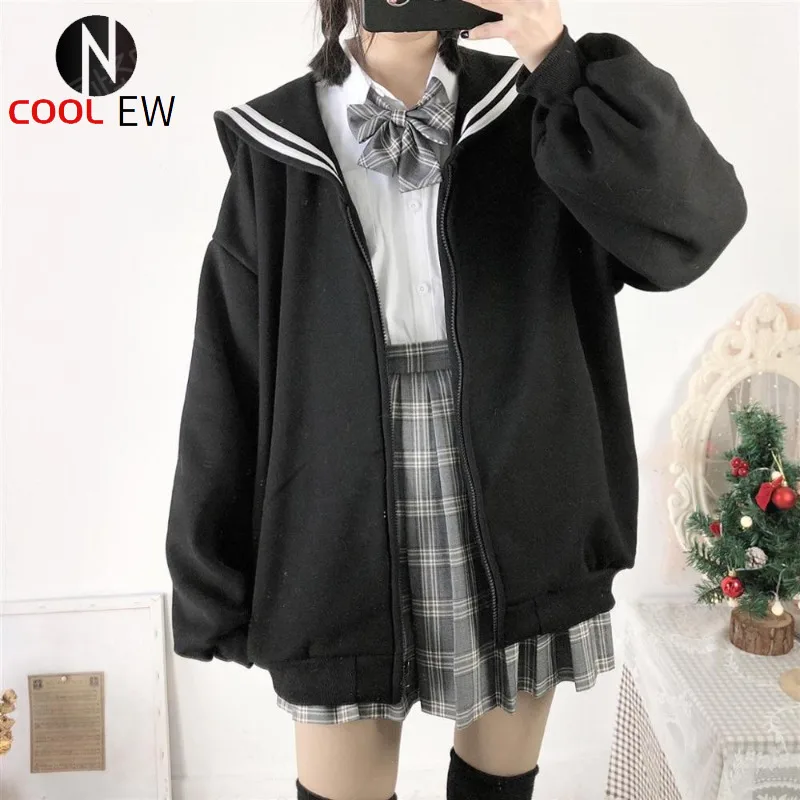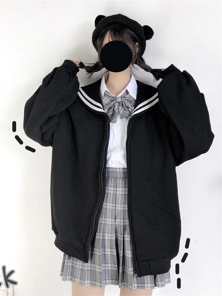 Кавайная толстовка на молнии, свитшот с матросским воротником в япо...