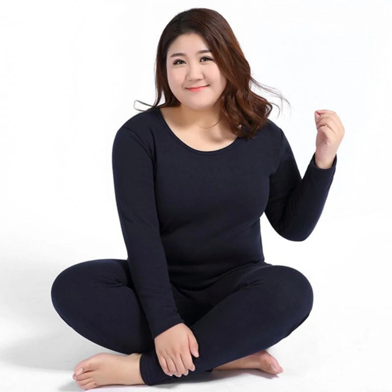 Комплект женского термобелья из флиса с круглым вырезом, большого размера