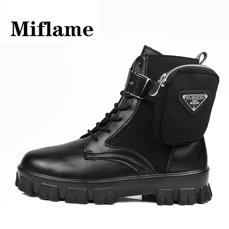 Мужские высокие ботинки на платформе, черные повседневные ботинки в стиле панк, с ремешком и пряжкой, дизайнерские ботинки с карманами, Уличная обувь на массивной подошве, 2019