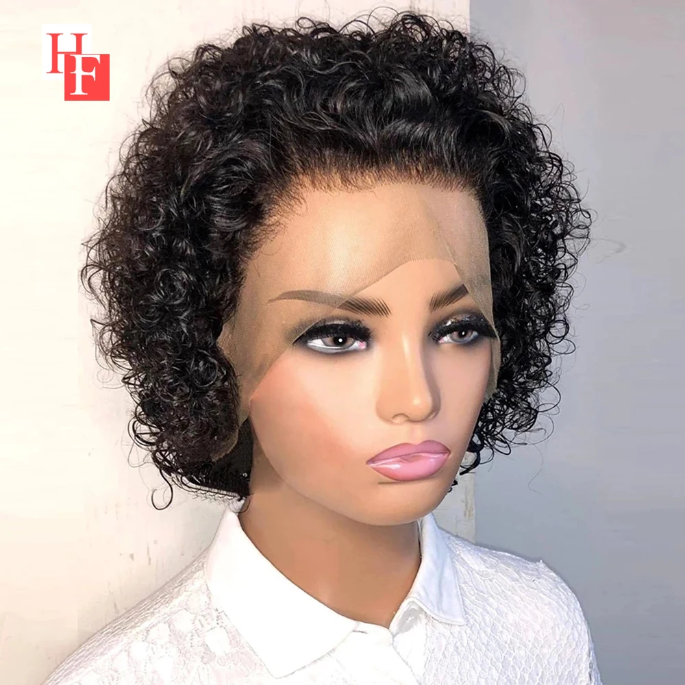 Короткие вьющиеся кружевные передние парики боб 13x1 бразильские во...