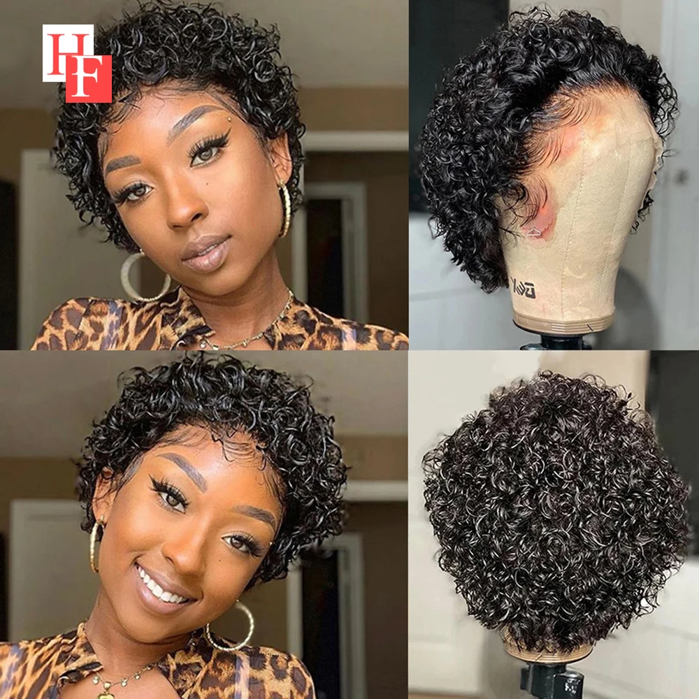 Короткие вьющиеся кружевные передние парики 13x1 бразильские водные...
