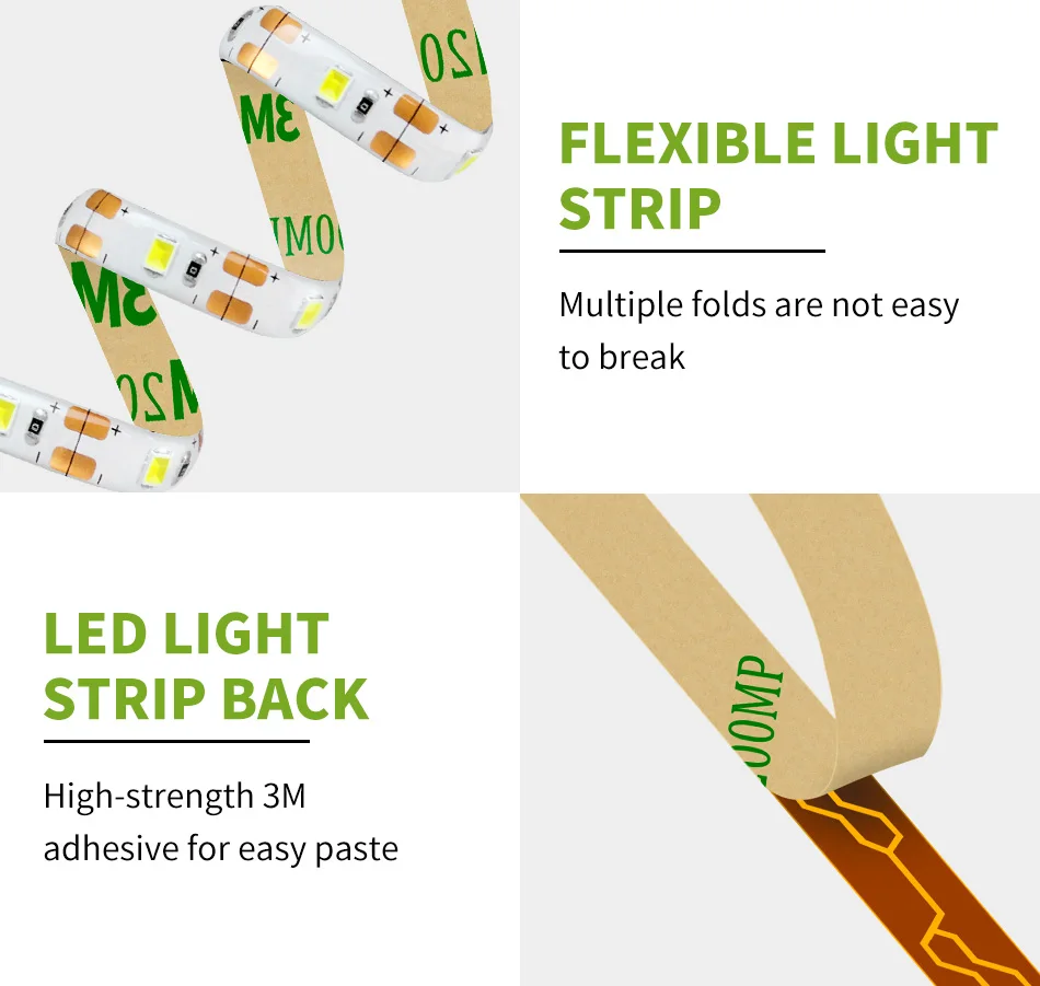 *Внешний слой ленты-светильник Прозрачный, прозрачный и гладкий. Это желательно не вредит экологии высокая прозрачность, изоляционного пластикового, высокий светильник с высоким коэффициентом пропускания, сильная гибкость и безопаснее. Свойства материала мягкой резины делают ремень лампы гибким и может быть согнут, сложен и ранен, что позволяет легко очертить линейный светильник. *3M двусторонний скотч на задней части для гирлянды, может быть напрямую и быстро вставить. *Светодиодный чип высокой цветопередачи, высококачественный светодиодный чип 2835SMD, высокая цветопередача, низкий светильник, долговечный. *Дизайн антимертвых бусин, один светодиодный шарик лампы не яркий, другие бусины лампы, как правило, освещены, не влияет. *Полностью герметичная и водонепроницаемая технология, она может использоваться в различных средах, безопаснее и долговечнее. *Безопасная медная проволока, хорошая электропроводность, быстрая теплоотдача, стабильная и безопасная. *Интимные линии пошива, чтобы соответствовать длине, которую вы хотите, вы можете организовать свои идеи по вашему желанию.