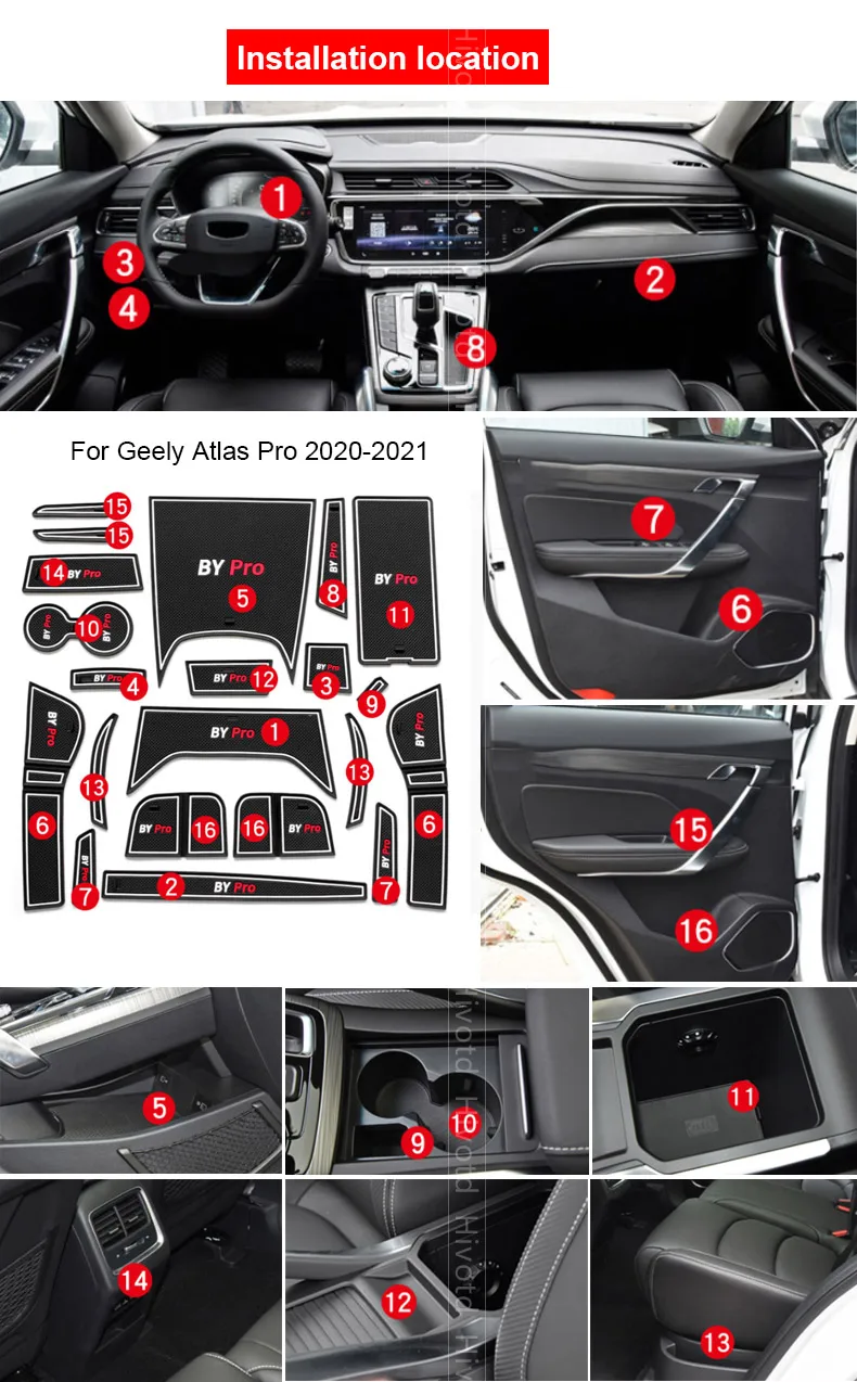 Резиновые коврики для дверей Azkarra джили атлас про Geely Atlas Pro, Нескользящие коврики из ПВХ с прорезями для ворот, декоративный коврик для салона автомобиля 2020 2021 Детали интерьера