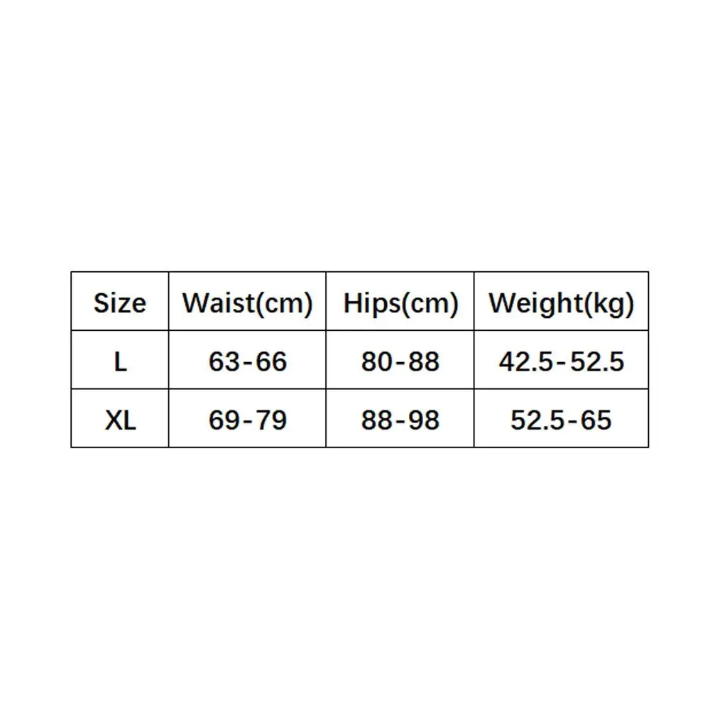 Размер: XL: обхват талии: 69-79 см; Рекомендуемый вес: 52,5-65 кг; Обхват бедер: 88-98 см