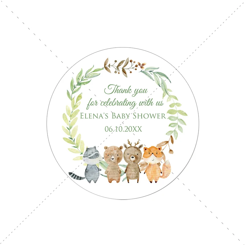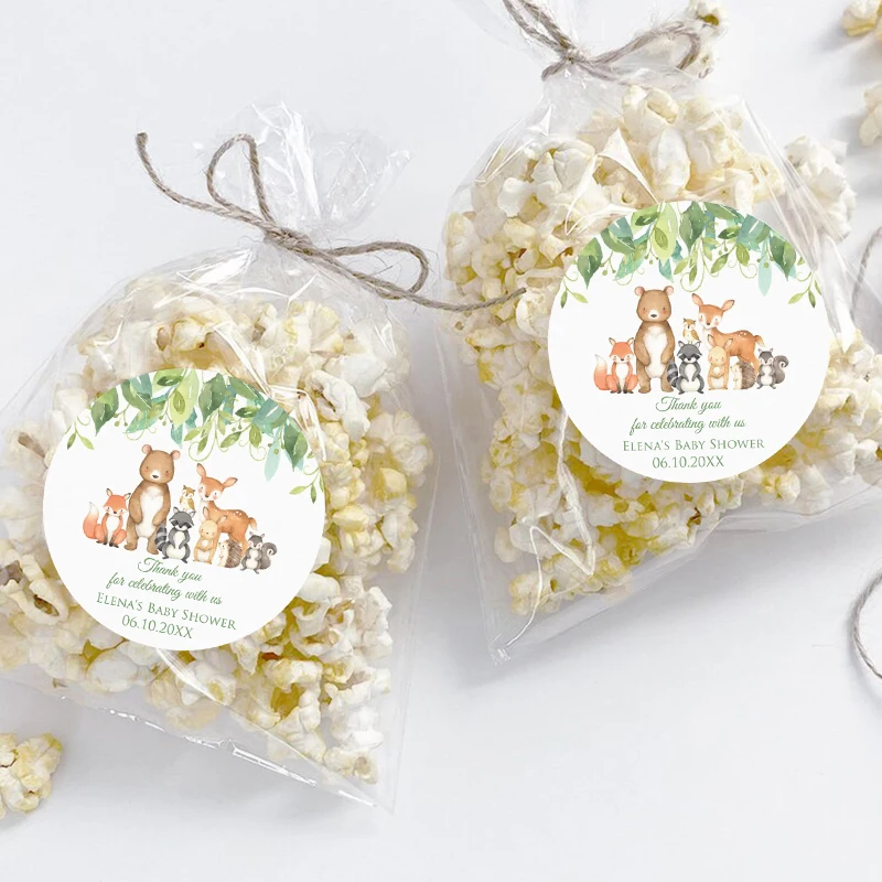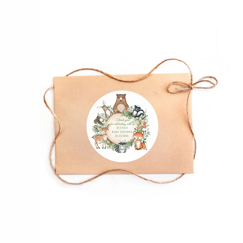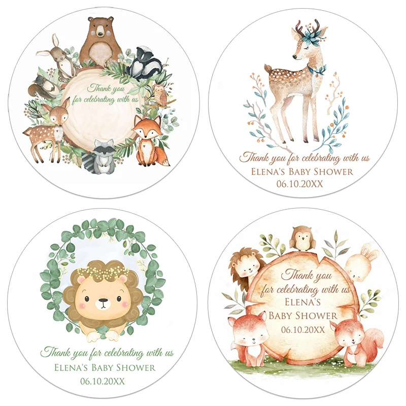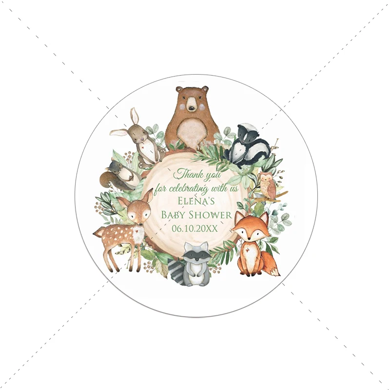 Этикетки с лесными животными в джунглях для вечеринки, наклейки сделай сам, декор вечерние ринки, индивидуальный текст на день рождения, крещение малышом