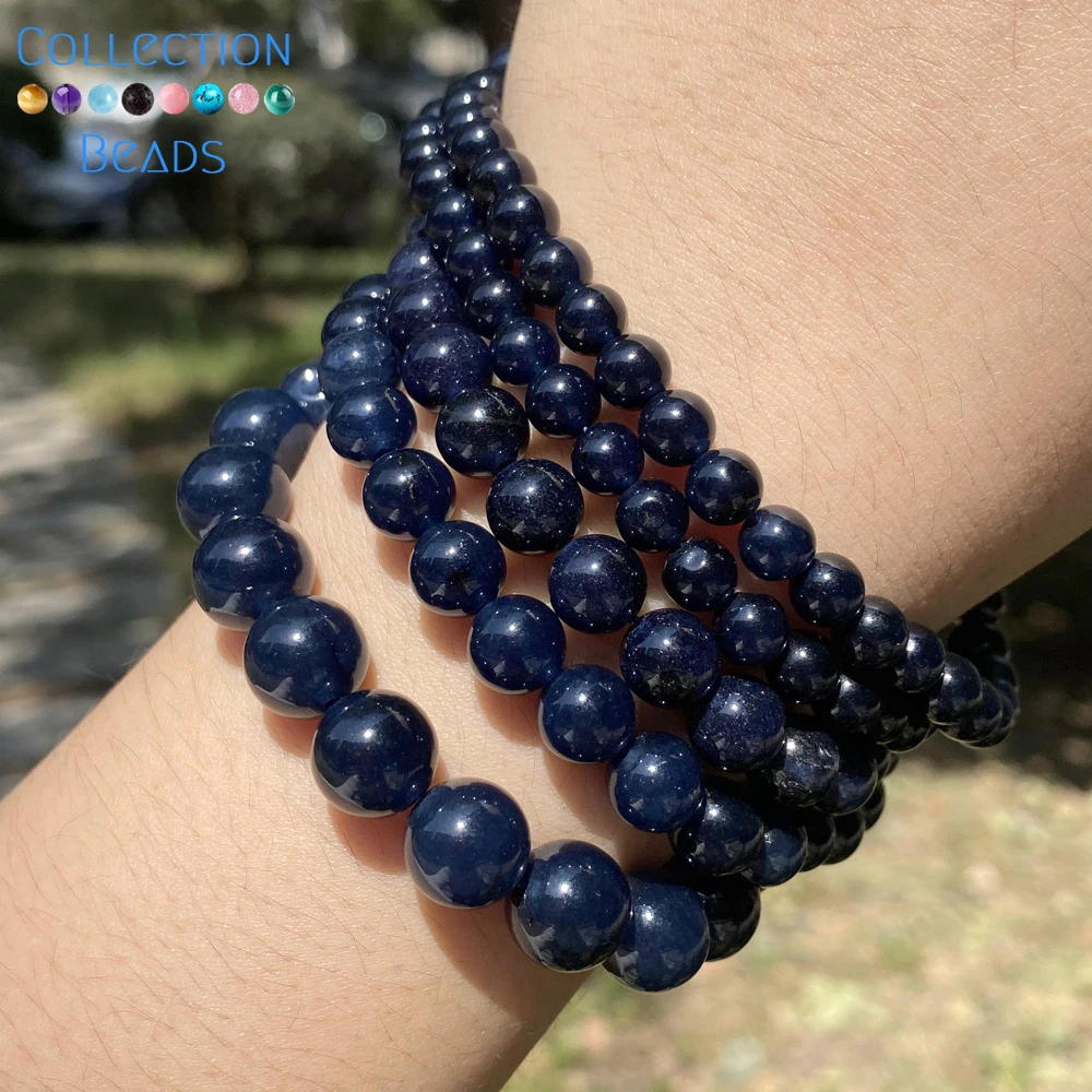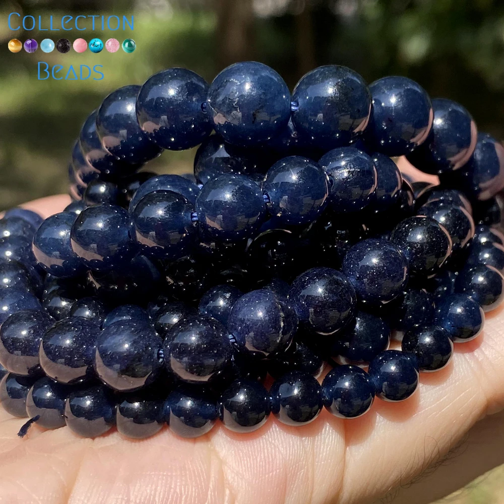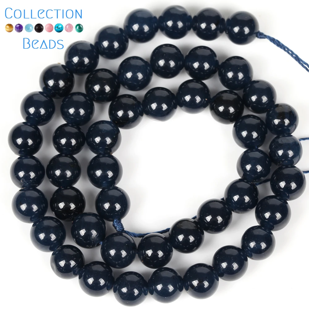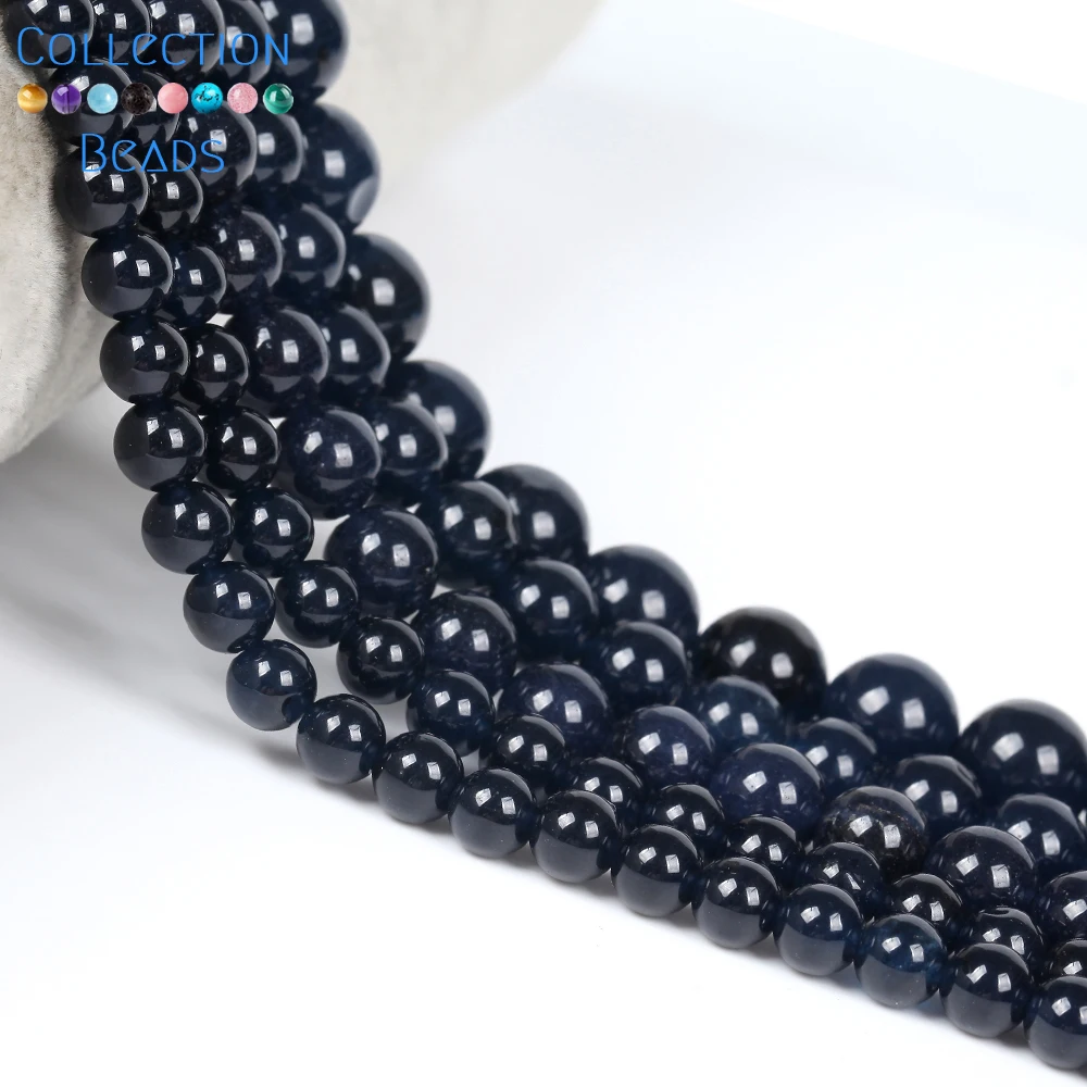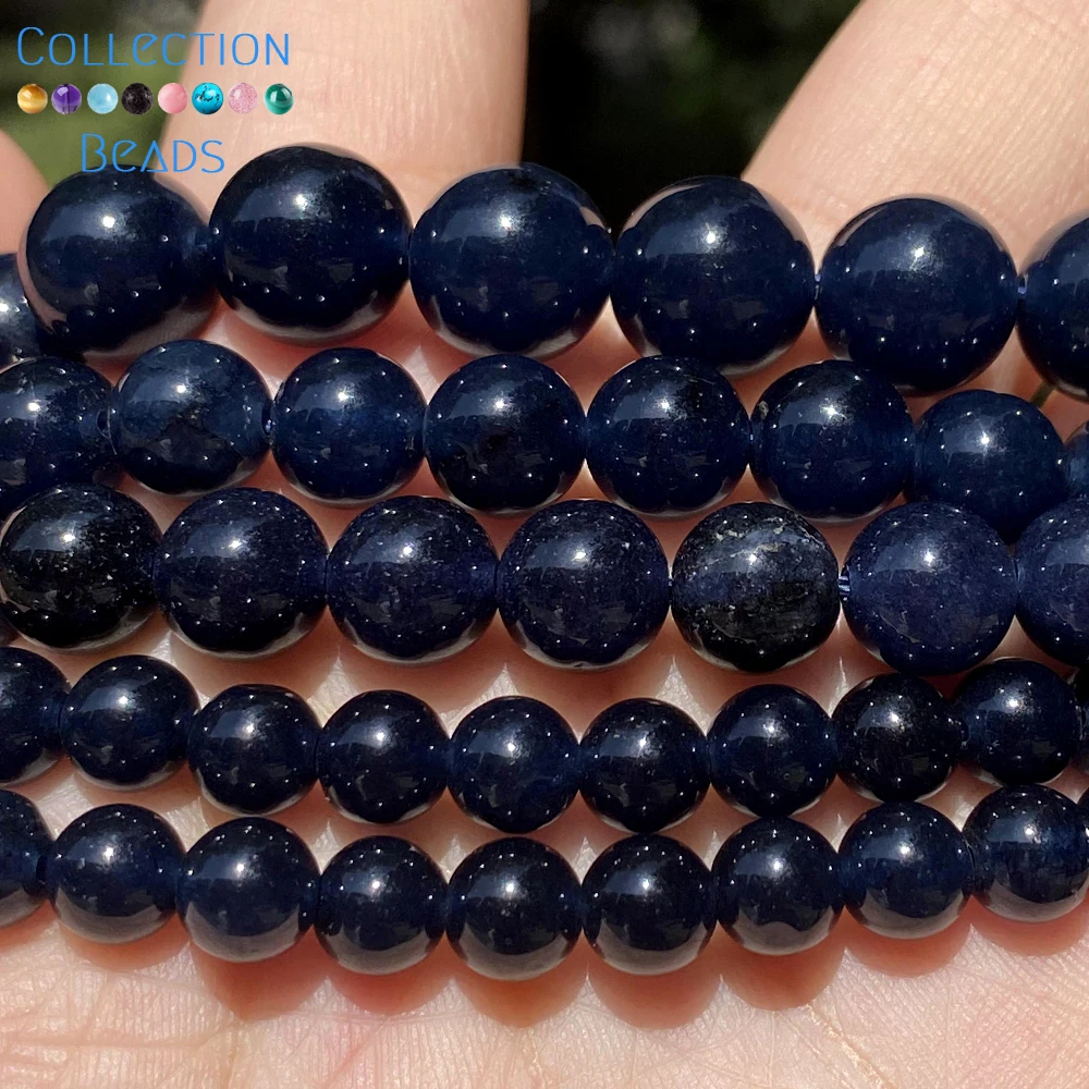 Бусины из натурального камня 6, 8, 10 мм, темно-синий турмалин, ангелит, круглые свободные бусины, бриллиантовое ожерелье, браслет 15 дюймов