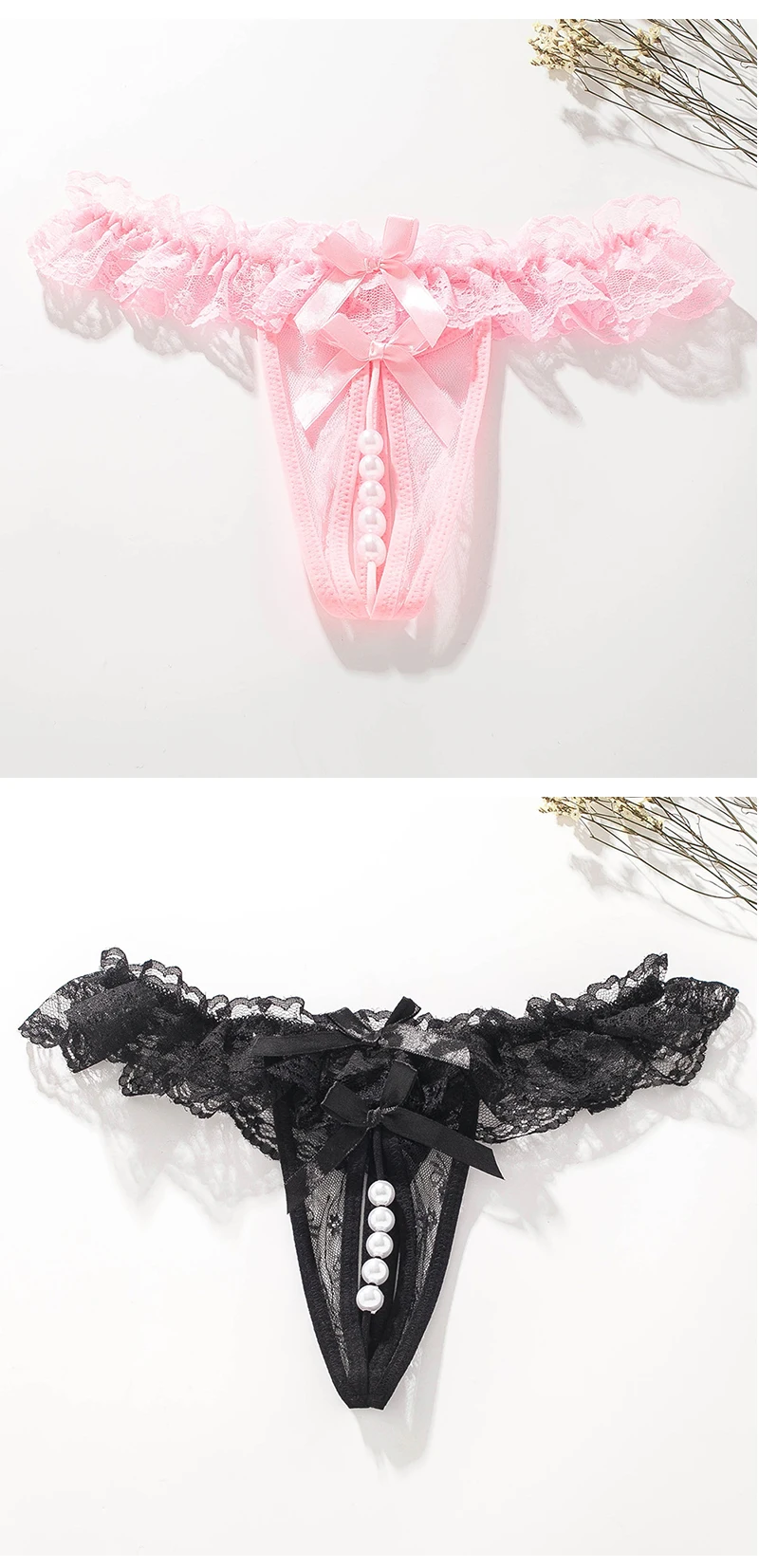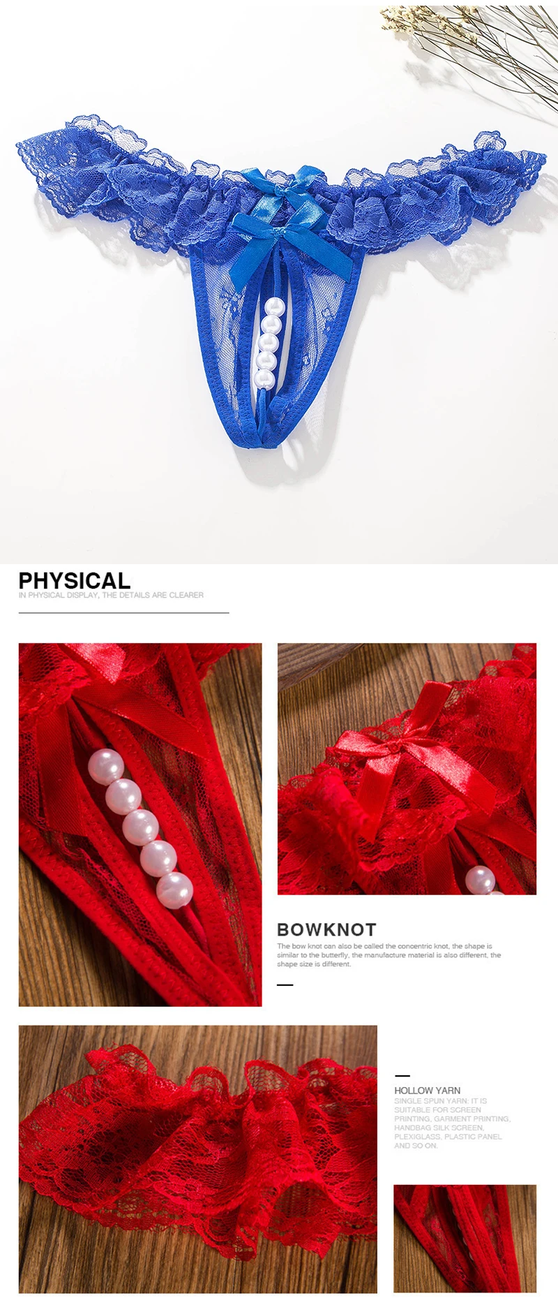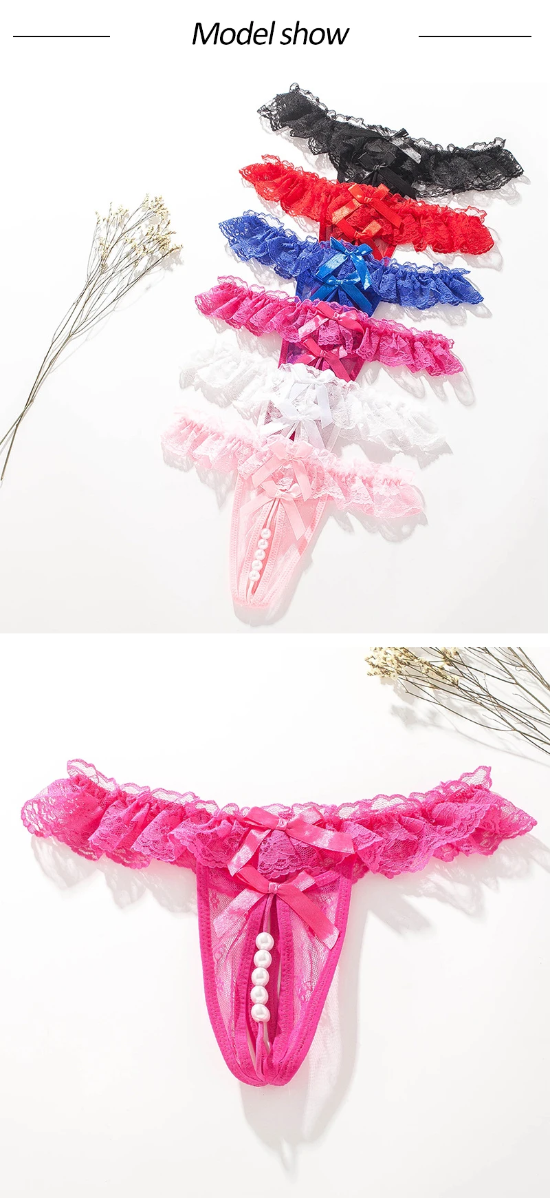Женские сексуальные кружевные трусики с жемчугом, сетчатые банты, нижнее белье, нижнее белье с заниженной талией, женские стринги, трусы