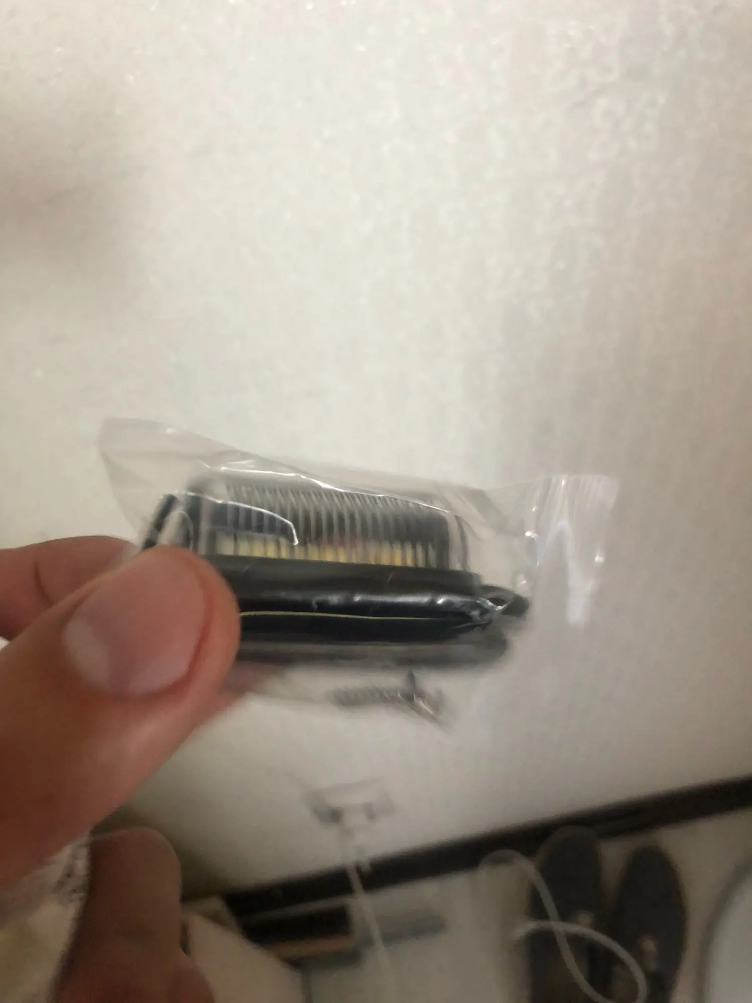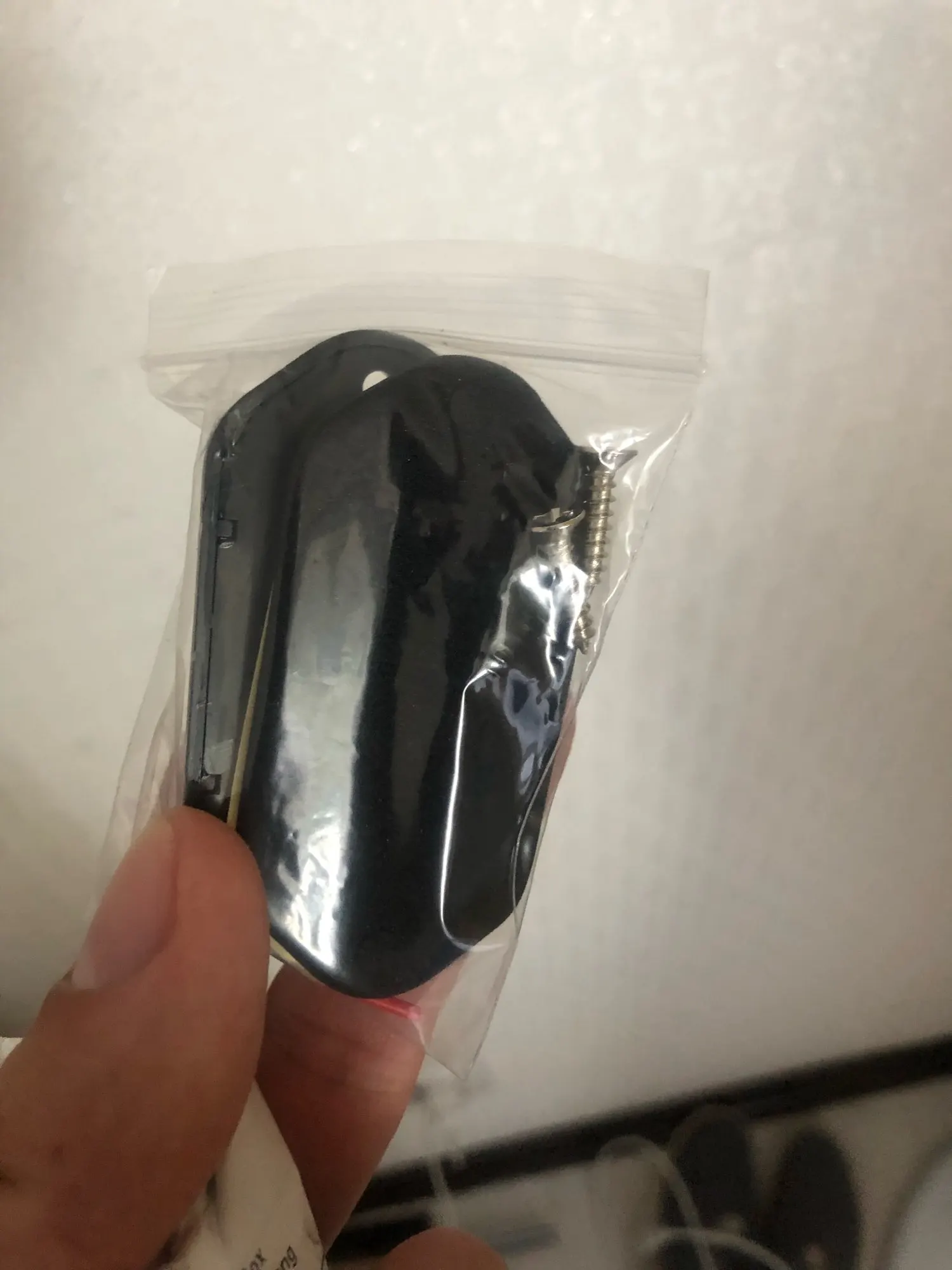 Пришло в течение месяца. Товар на вид сделан добротно. В комплекте саморезы для крепления а также что то похожее на двусторонний скотч ( правда с одной стороны липкая лента, может просто прокладка), проверил работает.