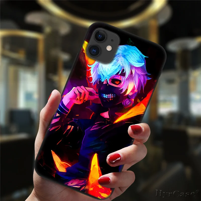 Силиконовый чехол для iPhone 11 12 13 Pro XS Max Mini 8 7 Plus X XR 6 6S 5S SE 2020 Black Case Japan Anime Tokyo Ghoul Kaneki Ken