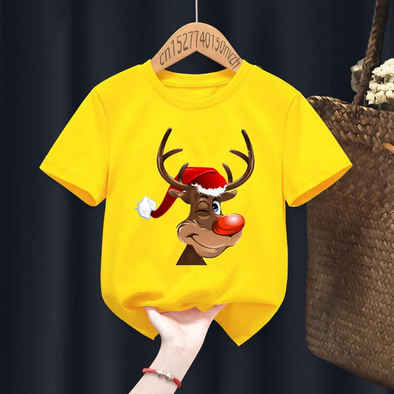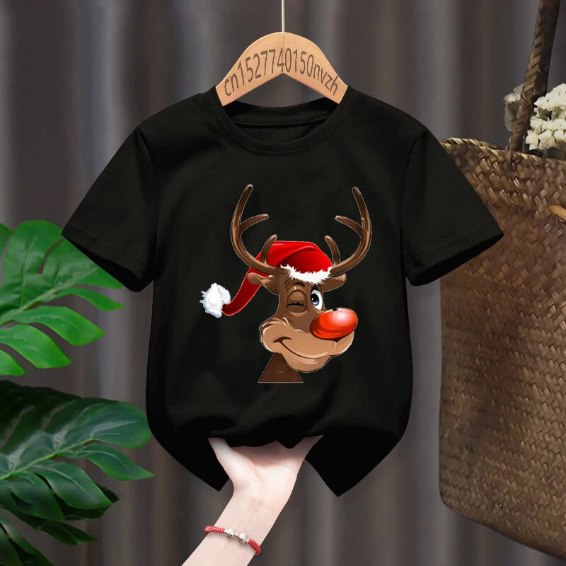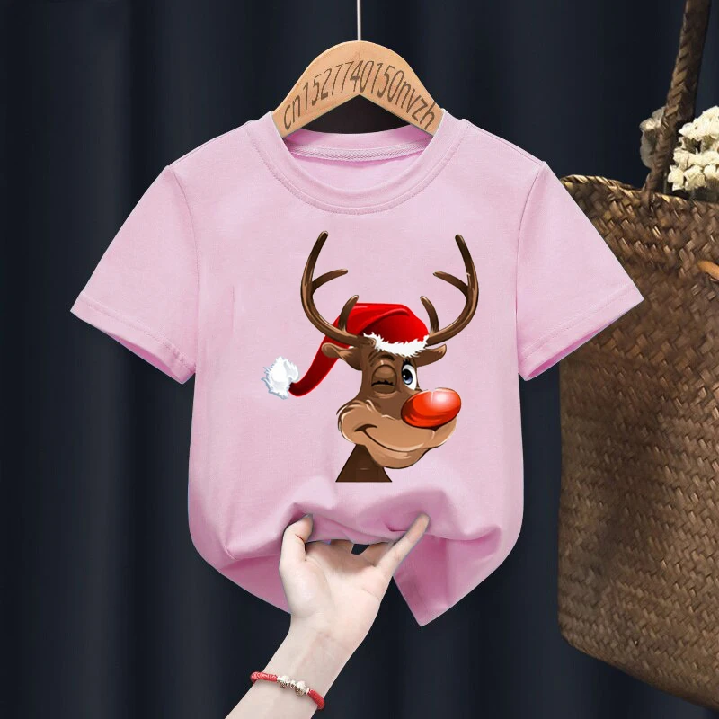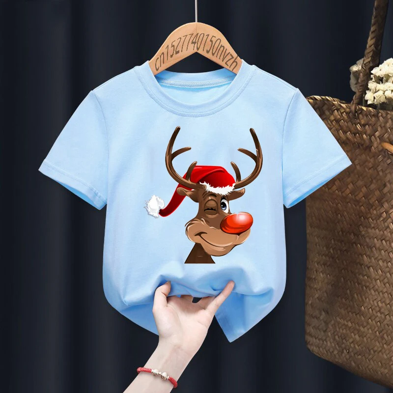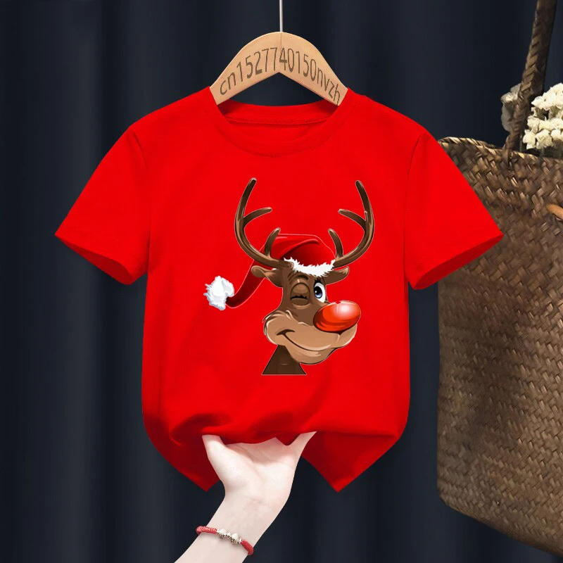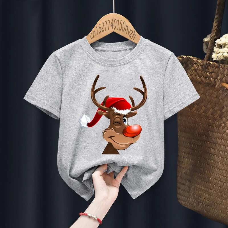 Белая футболка для мальчиков и девочек с милым рождественским принтом оленя, красная летняя Милая забавная одежда для маленьких детей Y2K, Прямая поставка