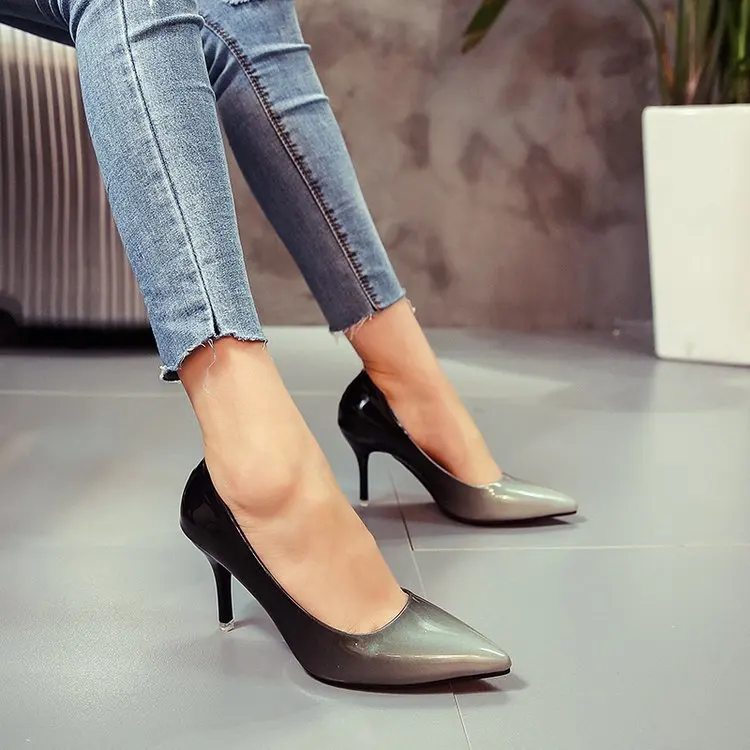 Женские туфли из лакированной кожи с градиентом, свадебные туфли с закрытым носком, привлекательные туфли на высоком каблуке-шпильке, туфли с острым носком