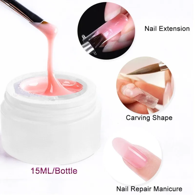 Гель для наращивания ногтей прозрачный розовый, 15 мл