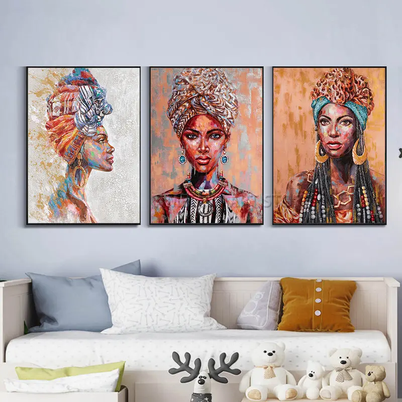 Абстрактные африканские женские портрет, холст, живопись постеры и принты Современные настенные художественные картины для украшения дома гостиной