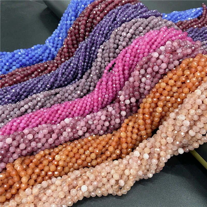 Натуральный граненый камень, маленькая бусина 2 3 4 мм, опал, кристалл жаспера, агата, аметист, бусины для бисероплетения, DIY браслет, ожерелье 15 дюймов