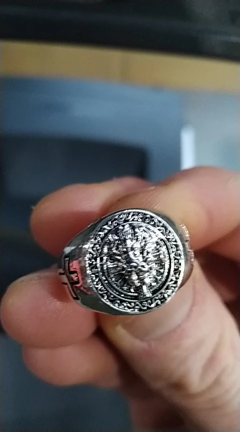 muy pequeño no para el dedo sino el anillo en si llo esperaba como un sello más gordito y me e llevado una decepción la cara de Cristo no se parece ni en el blanco de los ojos