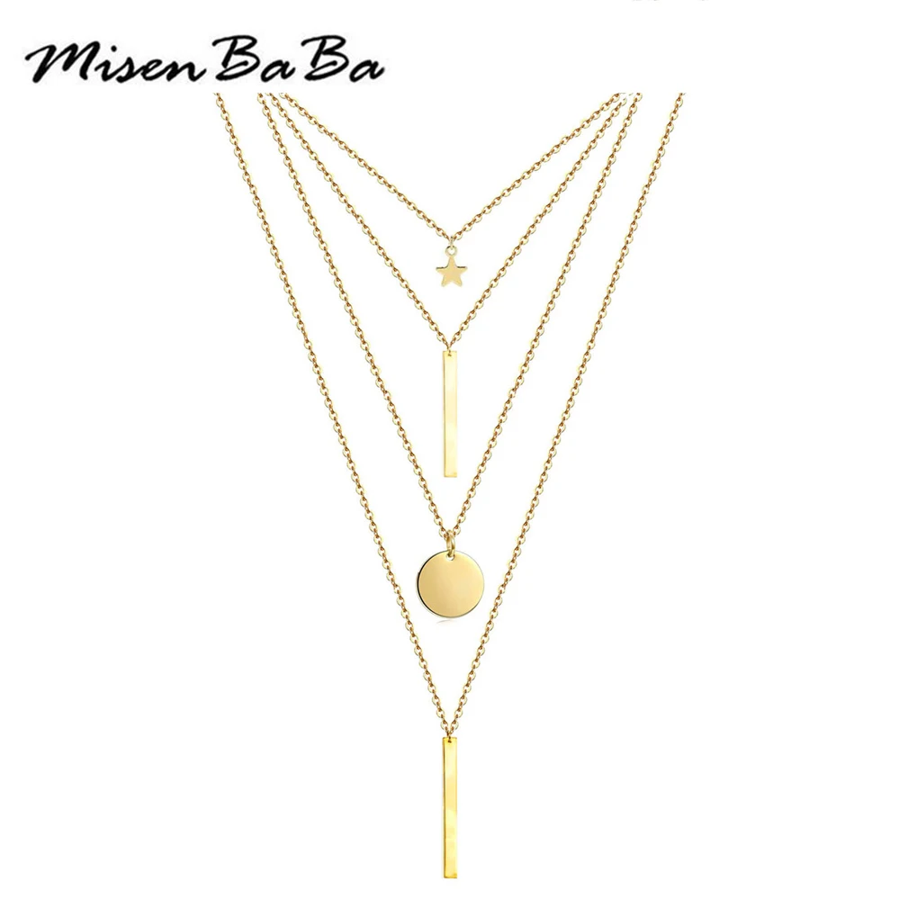 Простое многослойное ожерелье из нержавеющей стали с подвеской в виде звезды для женщин и девушек, чокер ручной работы, ожерелья, ювелирные изделия в стиле бохо