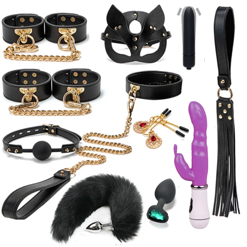 БДСМ бондаж наборы Наручники Воротник кляп Кролик Вибраторы из нату...