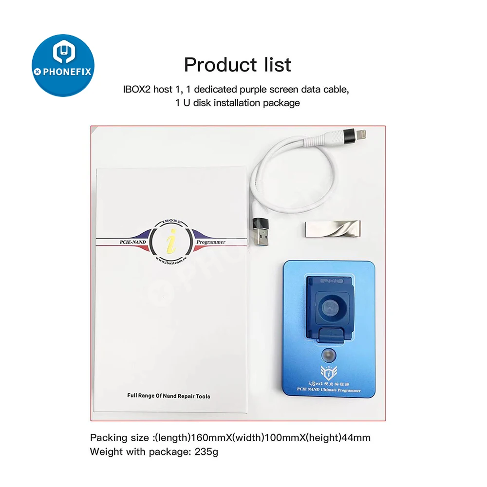 Программатор жесткого диска iBOX2 PCIE, для планшетов, iPad MAX, один клавиш, фиолетовый режим, без подключения, Wi-Fi, SN, чтение, запись, BGA110 NAND, программатор