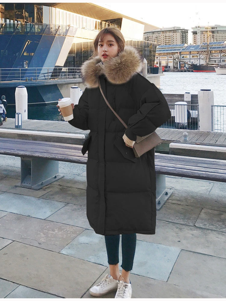 Длинный пуховик для женщин, зимняя парка выше колена с хлопковой подкладкой, свободные утепленные хлопковые пальто с мехом, женская одежда 2009 #