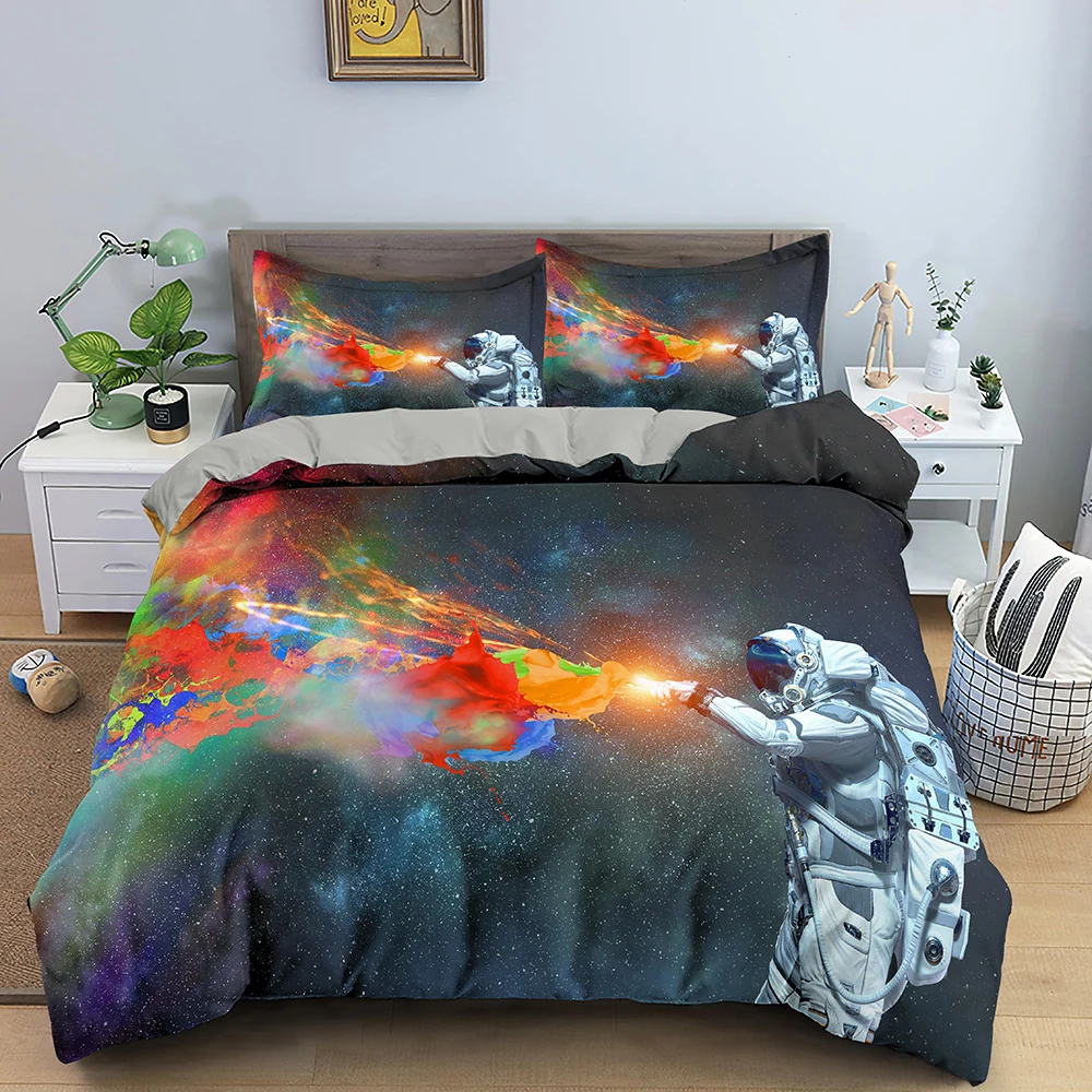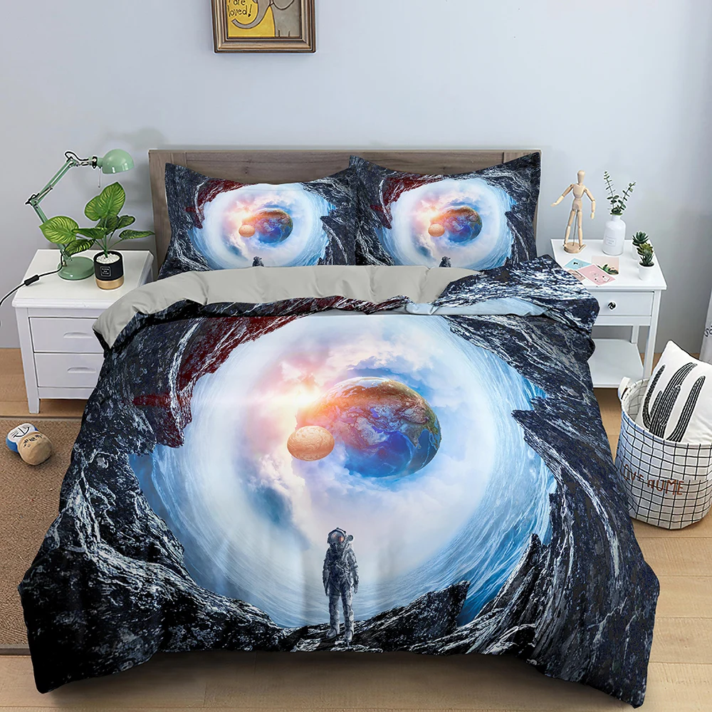 Комплект постельного белья с принтом астронавта, роскошный 3D комплект постельного белья, одеяло, чехол для мальчиков, взрослых, детей, пододеяльник, наволочка, двойная, королева, размер King